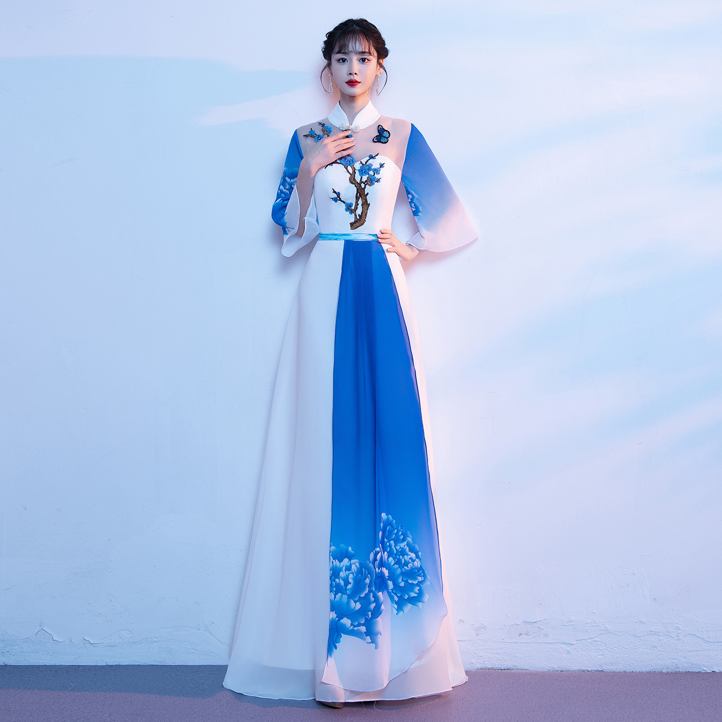 大合唱团演出服女士长裙新款 朗诵唱红歌比赛 主持成人舞台表演服装