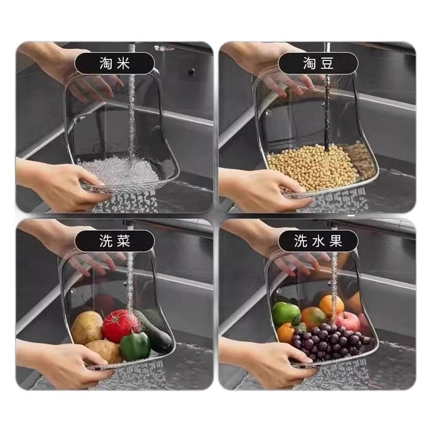 客厅沥水蔬果家用透明淘米滤水篮大容量果篮奢风多功能清洗篮轻