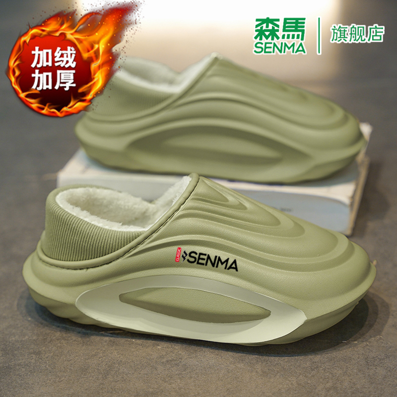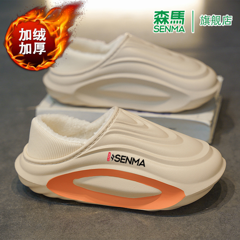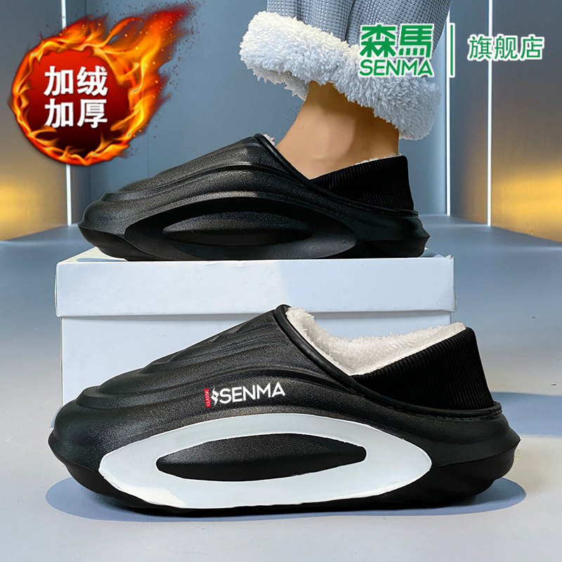 情侣居家女士毛毛拖鞋 森马棉拖鞋 新款 2025冬季 加绒加厚包头拖 男款