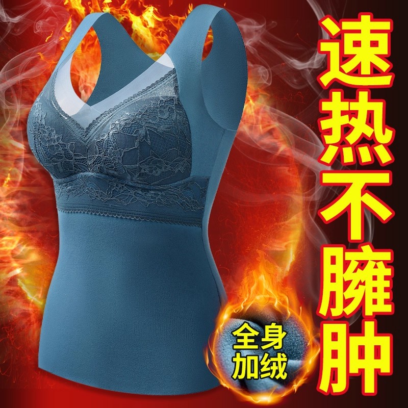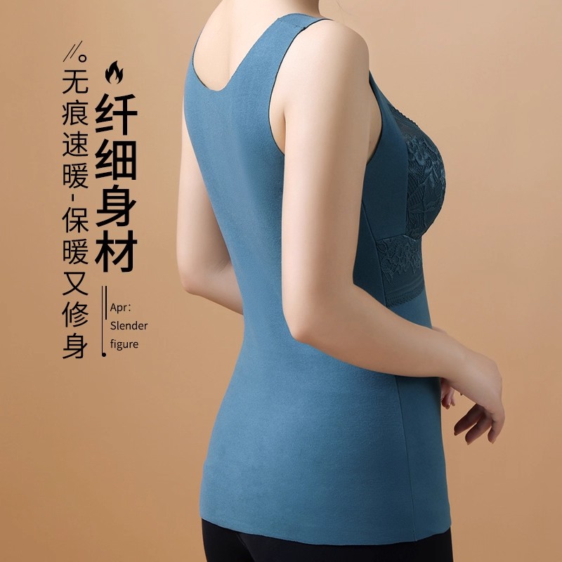 打底加厚保暖内衣女 固定一体杯修身 秋冬蕾丝无袖 保暖背心女新款
