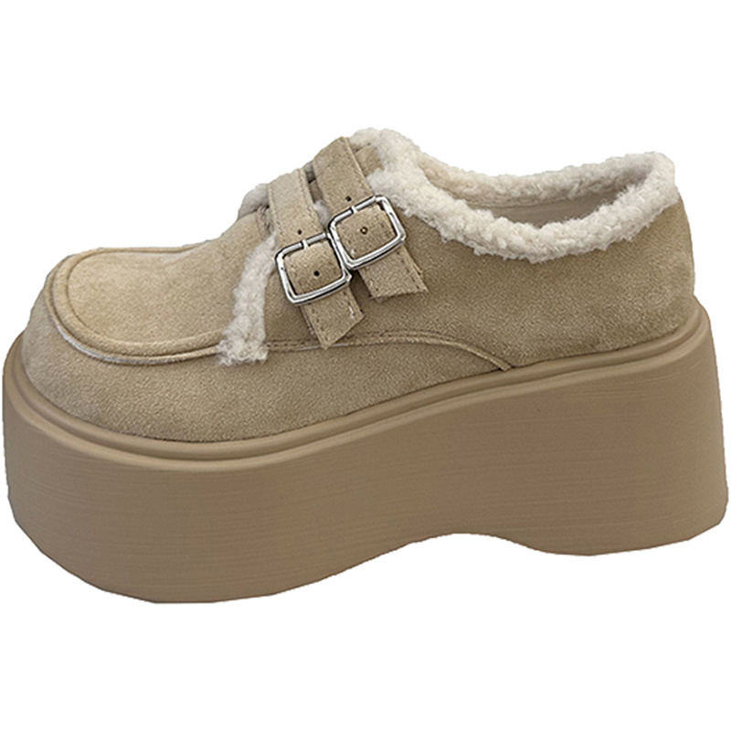 子E8N1DAM6 英伦风深口单鞋 百丽厚底复古绒面乐福勃肯鞋 女2026新款