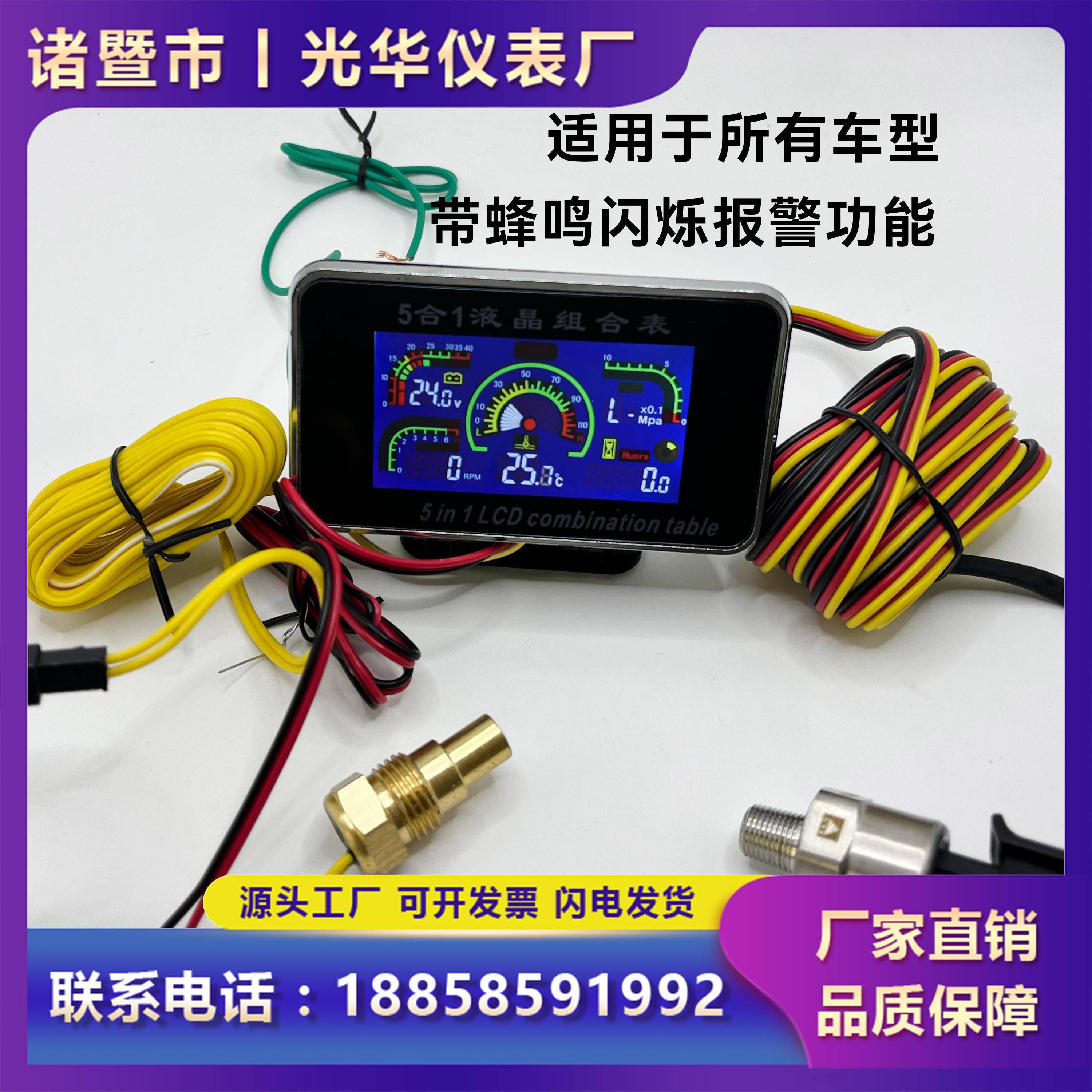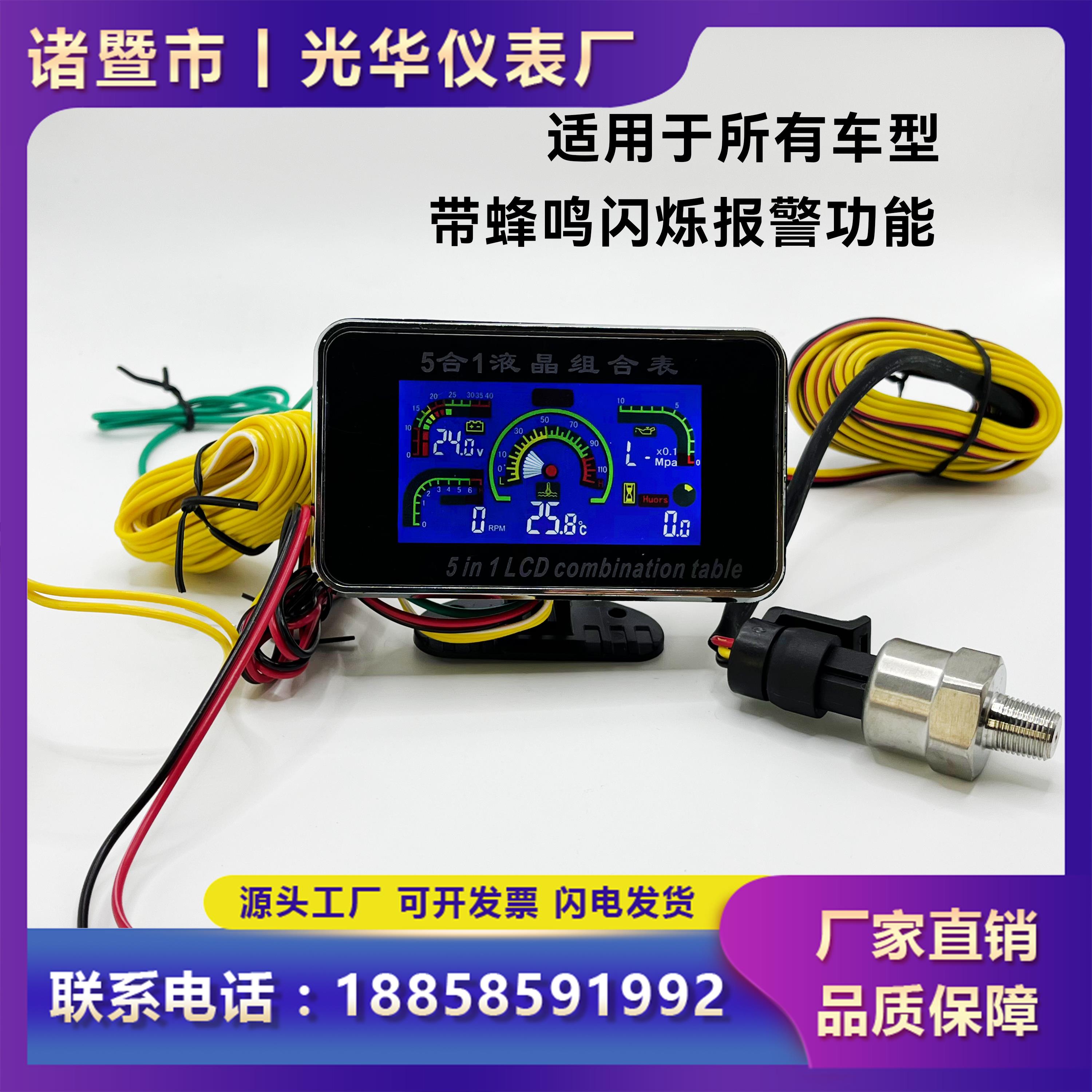 挖机叉车收割机货车汽车液晶水温表通用电压油压计时转速表五合一