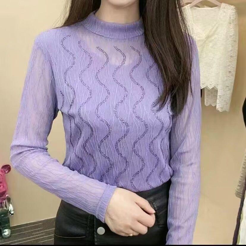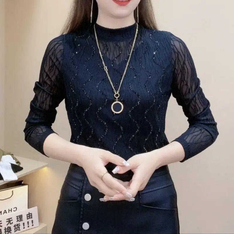 装 女装 时尚 蕾丝小衫 减龄上衣时髦洋1007k 长袖 秋冬打底内搭2025款