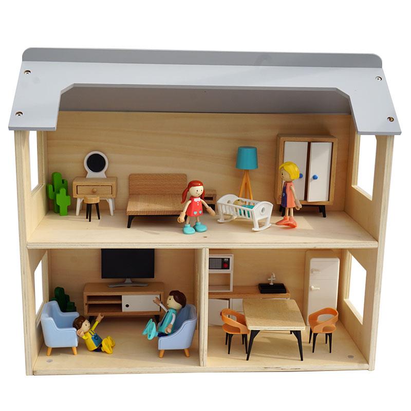原木中号娃娃房拼装 小屋别墅人偶房间家具儿童过家家玩具男女礼物