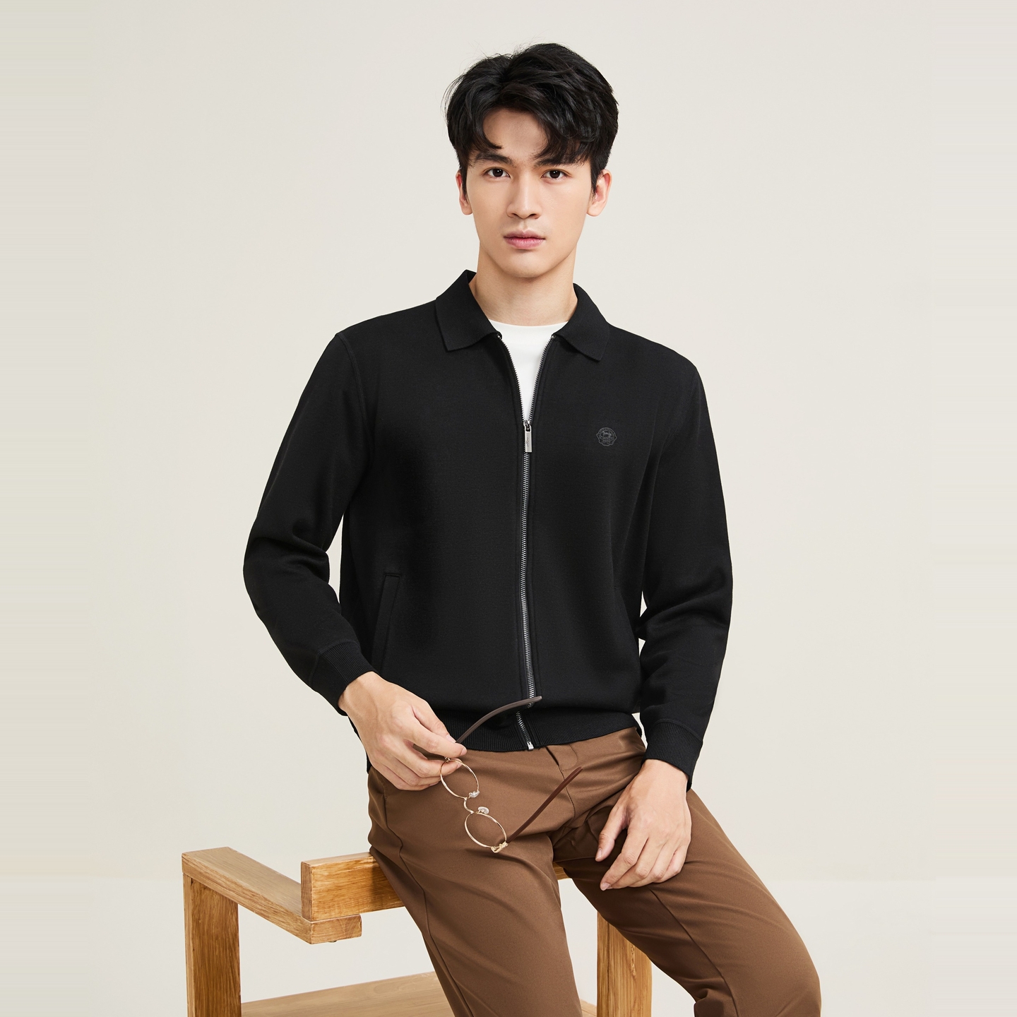 翻领针织衫 柒牌男士 毛衣 2025秋冬休闲拉链保暖厚外套 加绒开衫