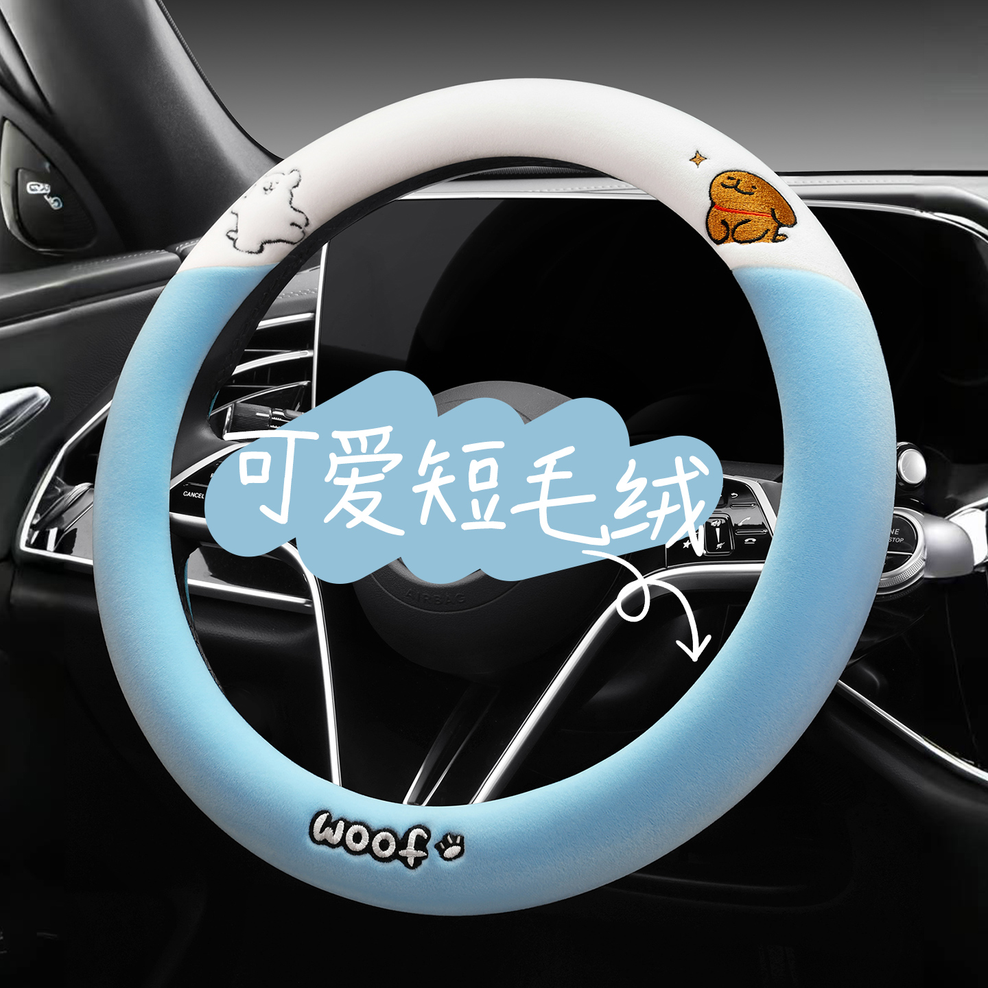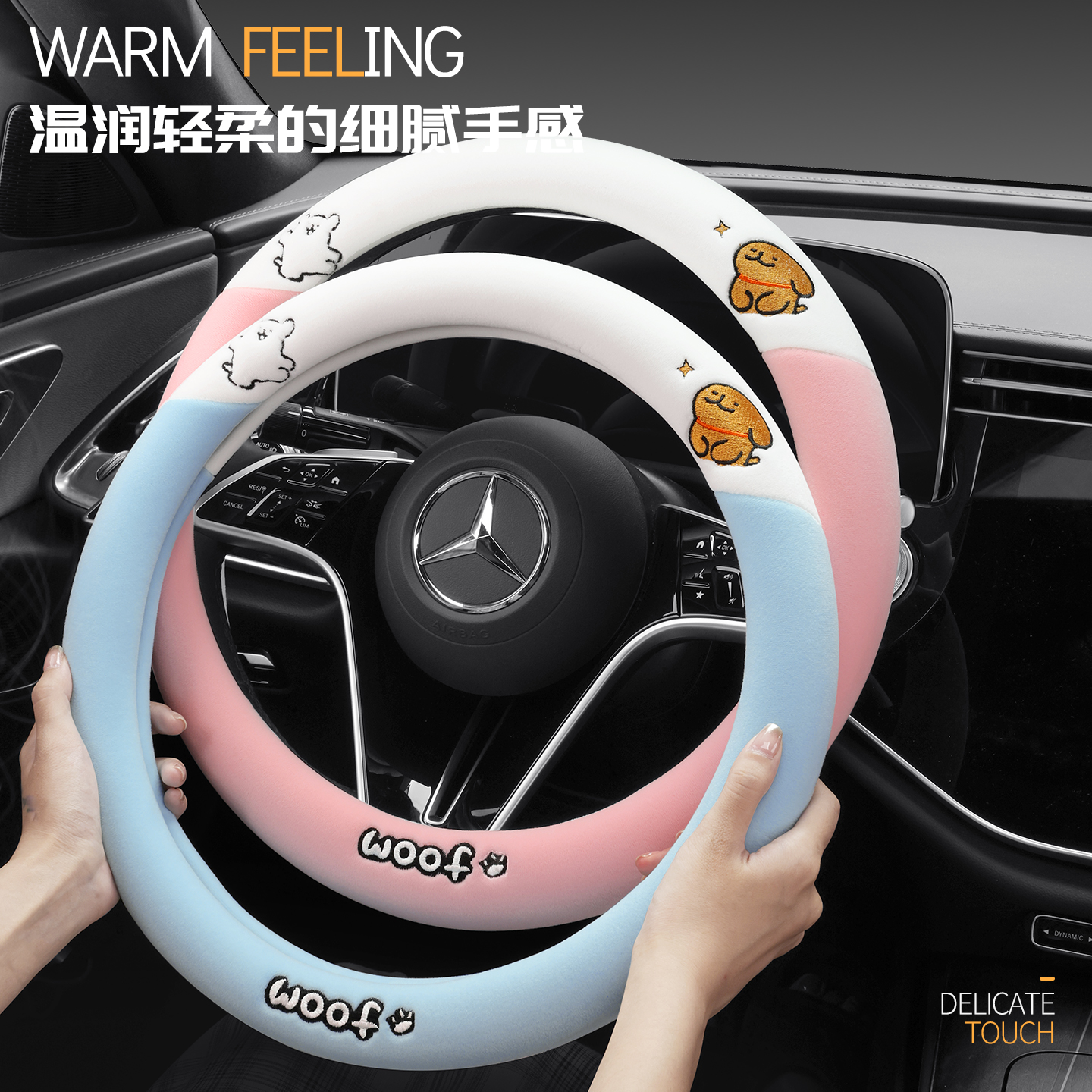 汽车方向盘套婴儿绒四季 d型汽车保护把套子 通用防滑吸汗男女冬季