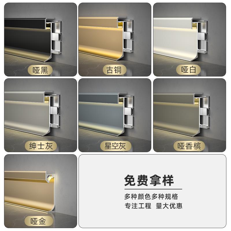 暗装 地脚线隐藏嵌入式 贴脚线 卡扣款 铝合金踢脚线led发光灯带明装