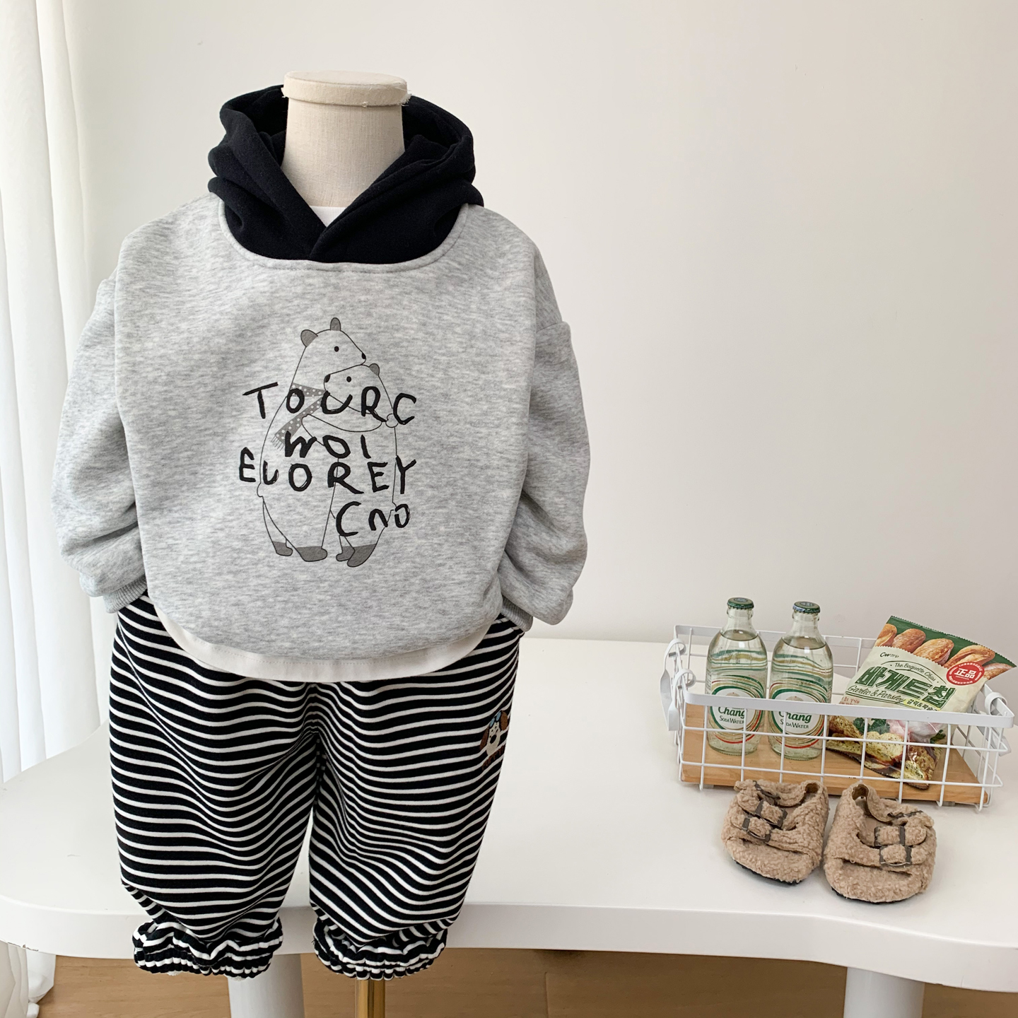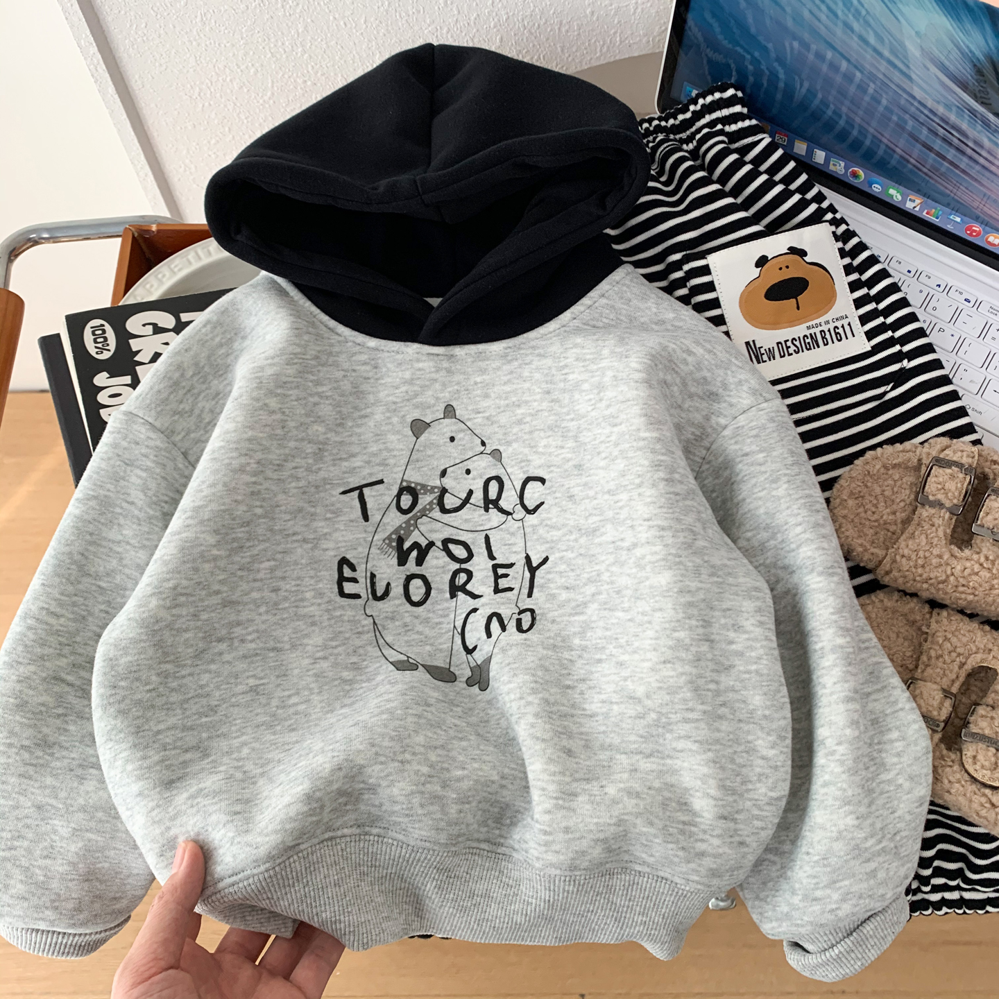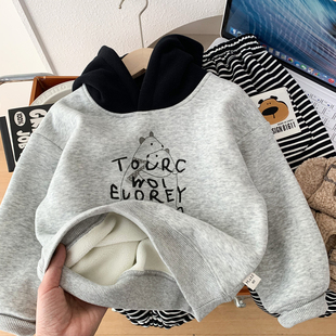 小童一体绒上衣 儿童洋气卡通套头衫 男童加绒卫衣秋冬帽衫 2025新款