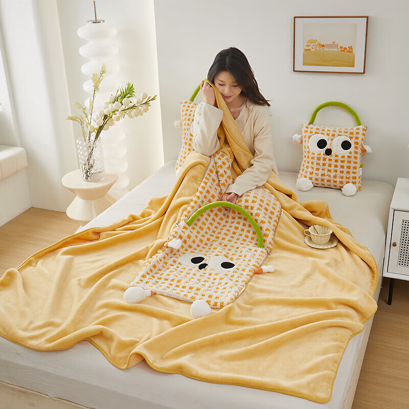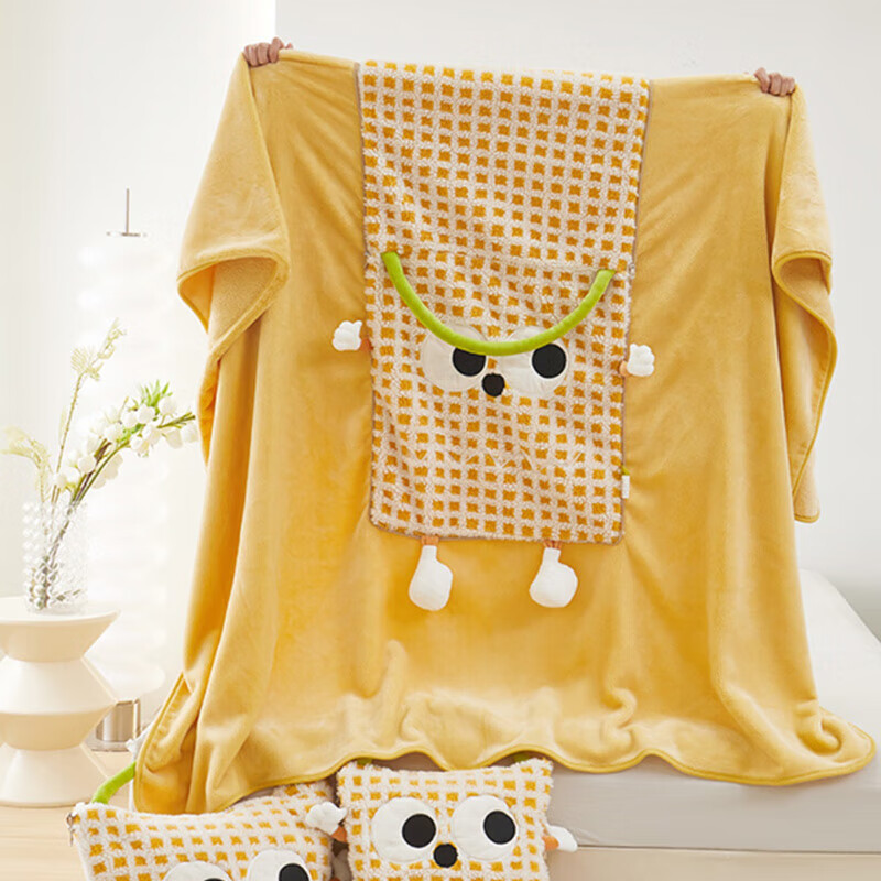 抱枕被两用午睡毯子二合一小怪兽车载枕头办公室午休盖毯靠垫