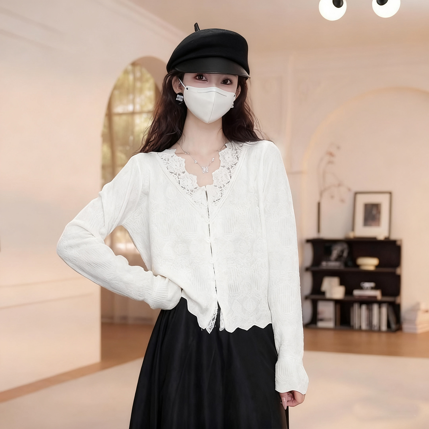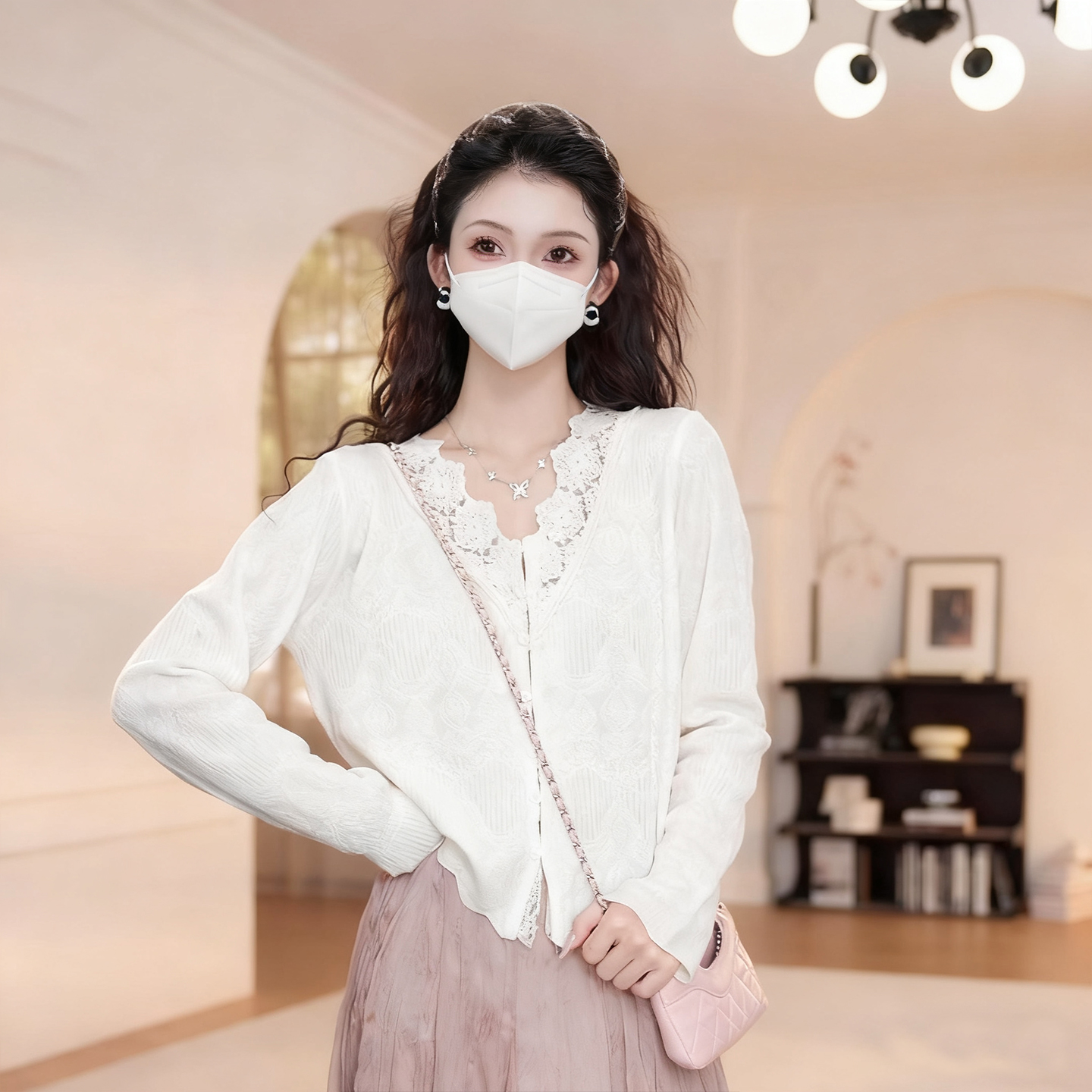 设计感针织拼接抽绳长袖 2025年新款 雪纺上衣 女秋装 假两件条纹衬衫
