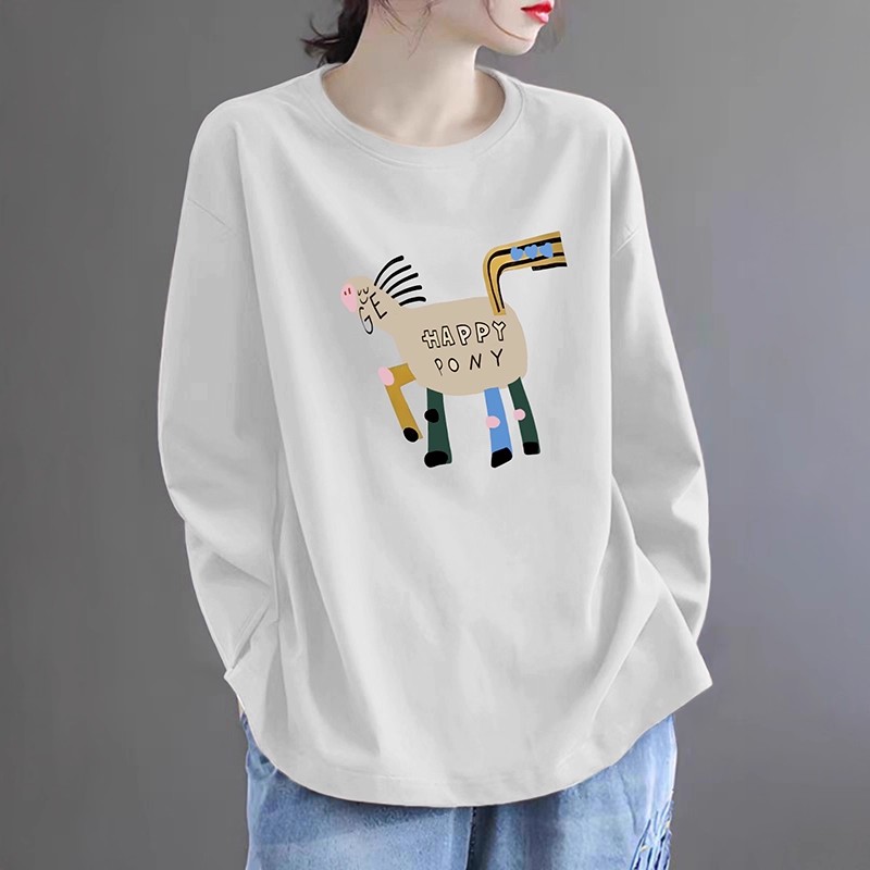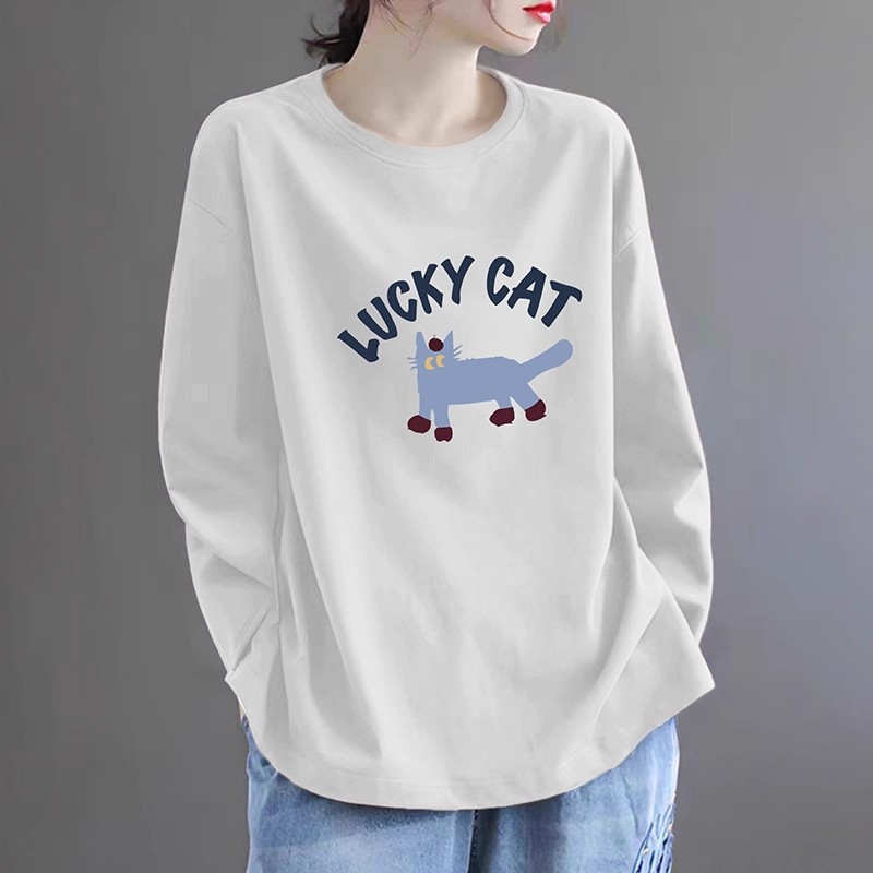 适合胖mm慵懒风别致打底上衣 T恤衫 vintage超好看国潮女士大码 长袖
