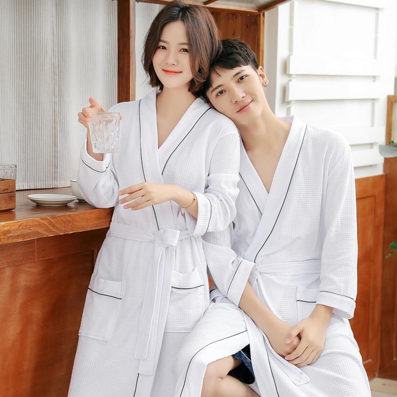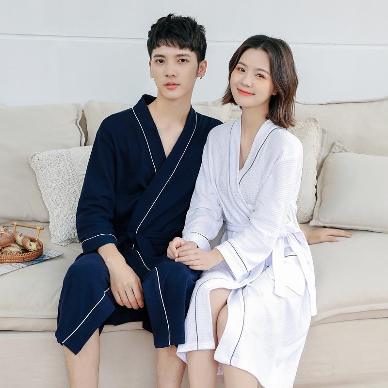 天男士 秋冬浴袍女款 情侣睡衣薄款 华夫格中长款 睡袍1009c 季