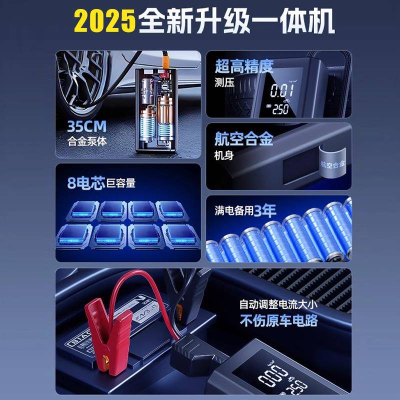 汽车应急强启动电源电瓶线搭电宝神器小车12v24v车载充气泵一体机