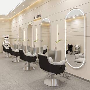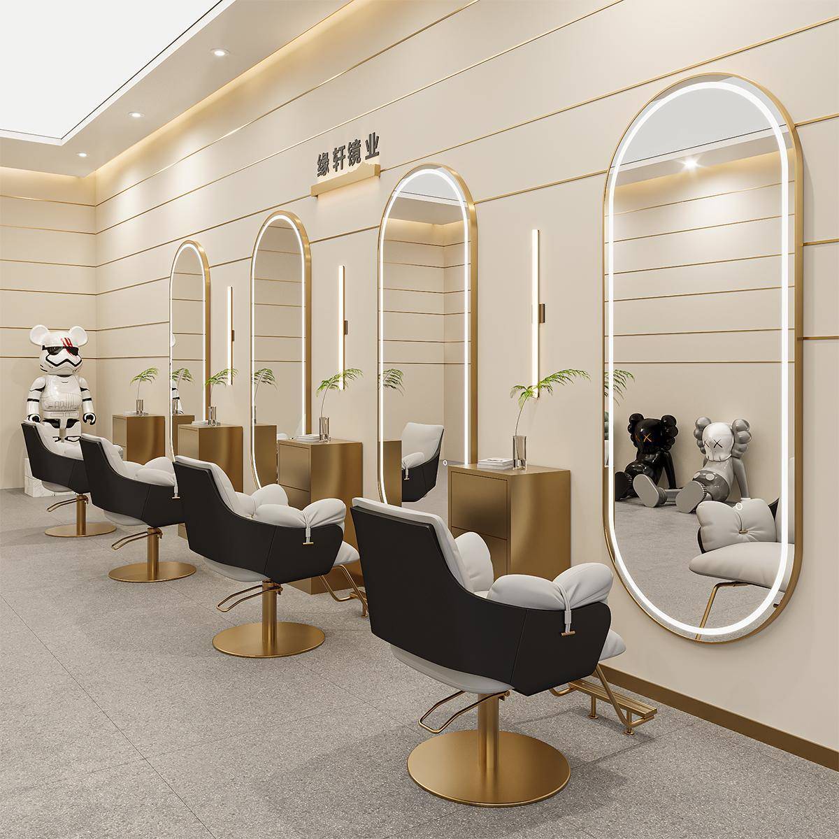 高端网红理发店镜子发廊专用镜台简约挂墙剪发镜落地镜台椭圆镜子