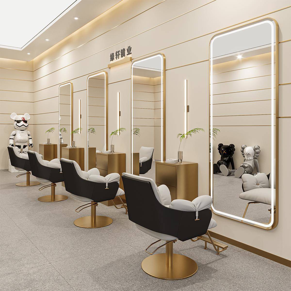 网红发廊专用新款 铝合金镜台理发店高级感镜子落地镜美发店专用镜