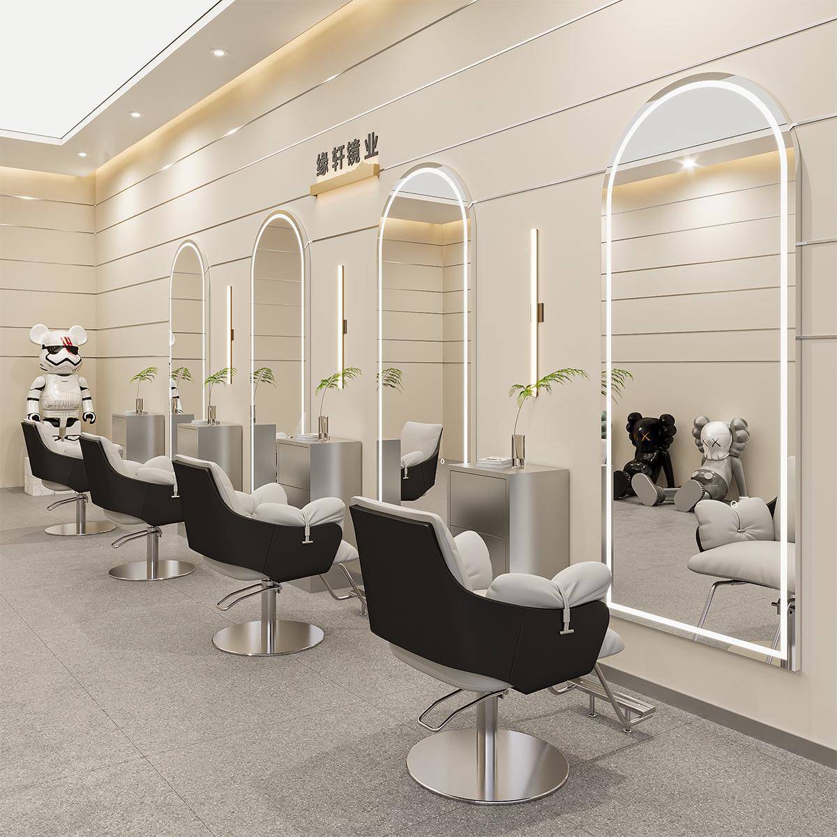 理发店镜子发廊烫染专用壁挂式 美发镜台单面体落地带智能灯镜led