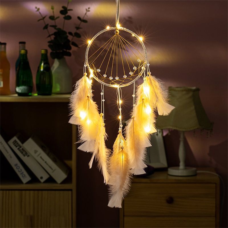 仙气月亮捕梦网挂件风铃diy手工材料包羽毛饰品挂饰地摊夜市爆款