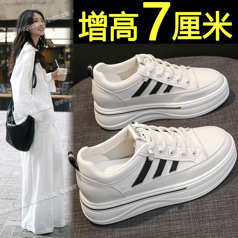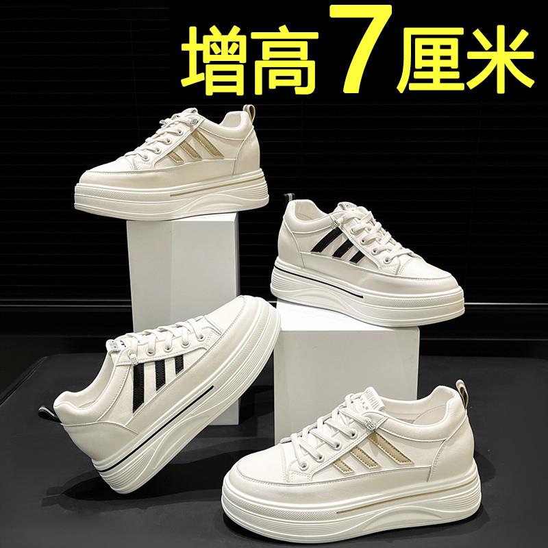 舒适百搭内增高女鞋 新品 秋季 女2025新款 轻便休闲松糕板 厚底小白鞋