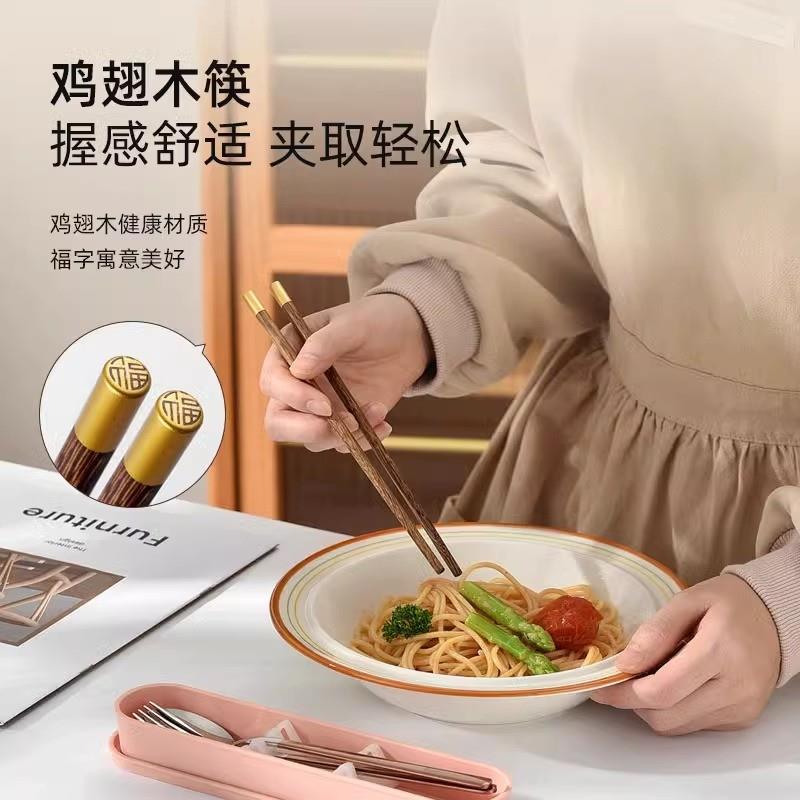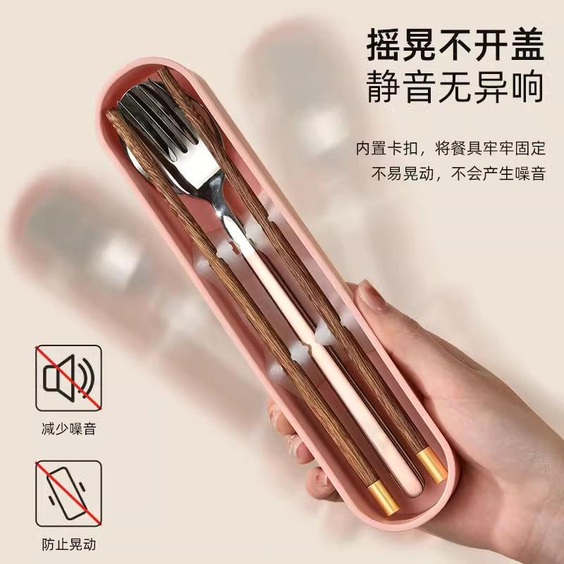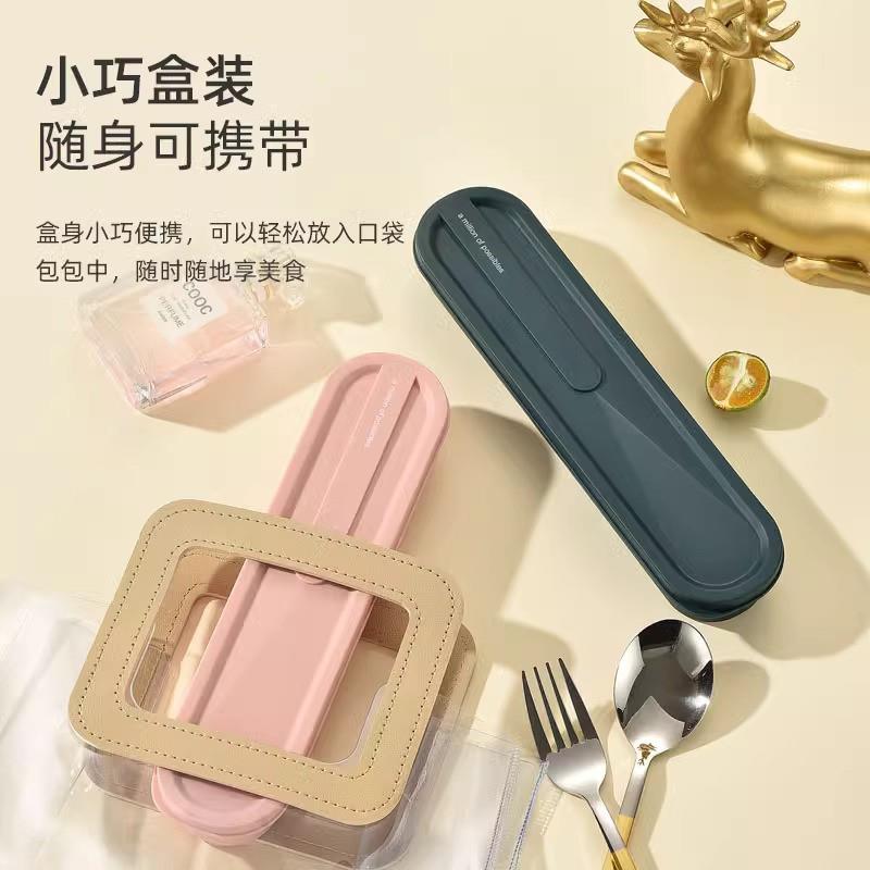 一人用三件套便携式 收纳盒316不锈钢筷子套装 筷子勺子 小学生装