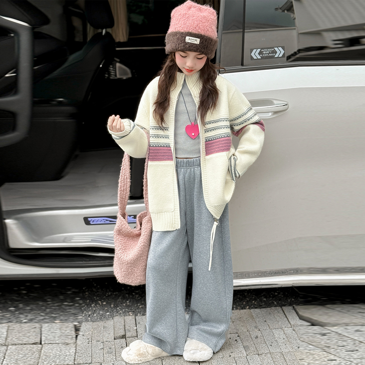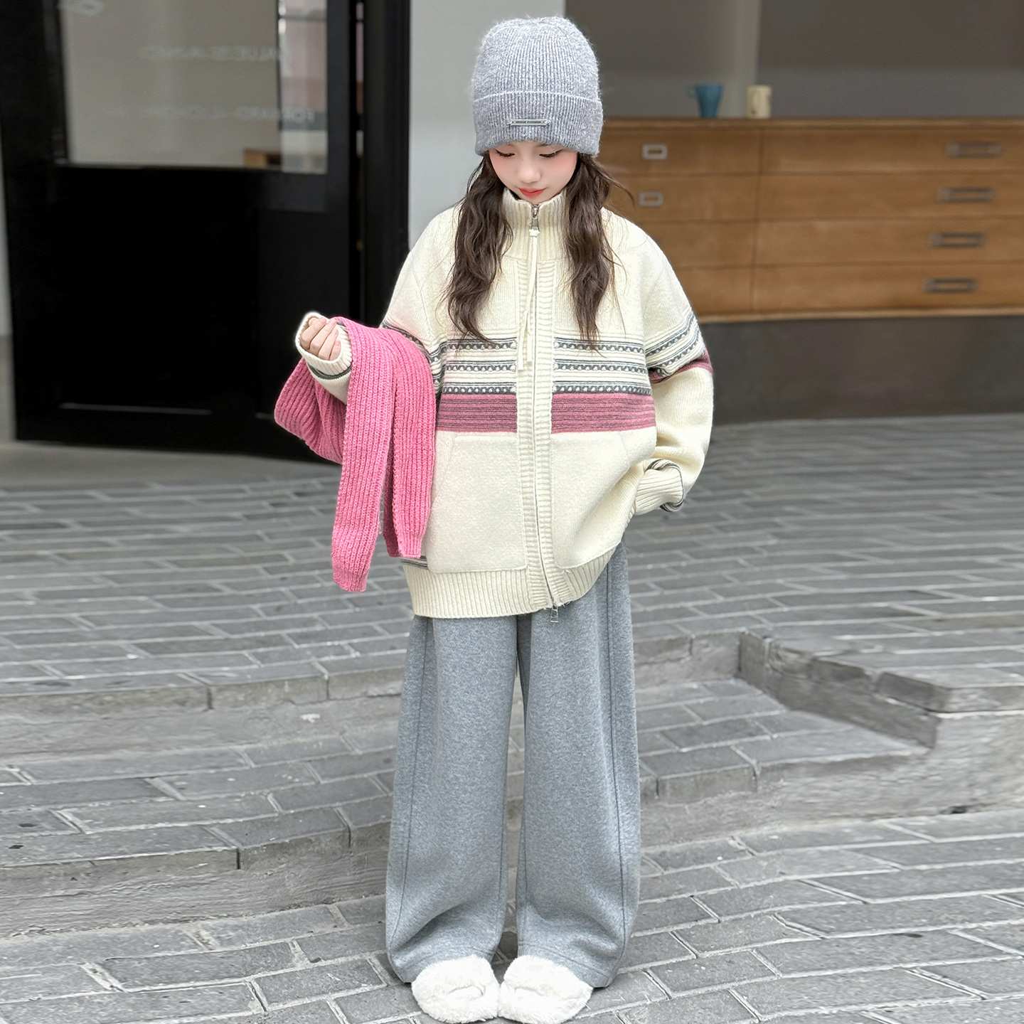 打底衫 女童针织外套秋冬款 儿童冬季 洋气儿童加厚毛衣开衫 2025新款