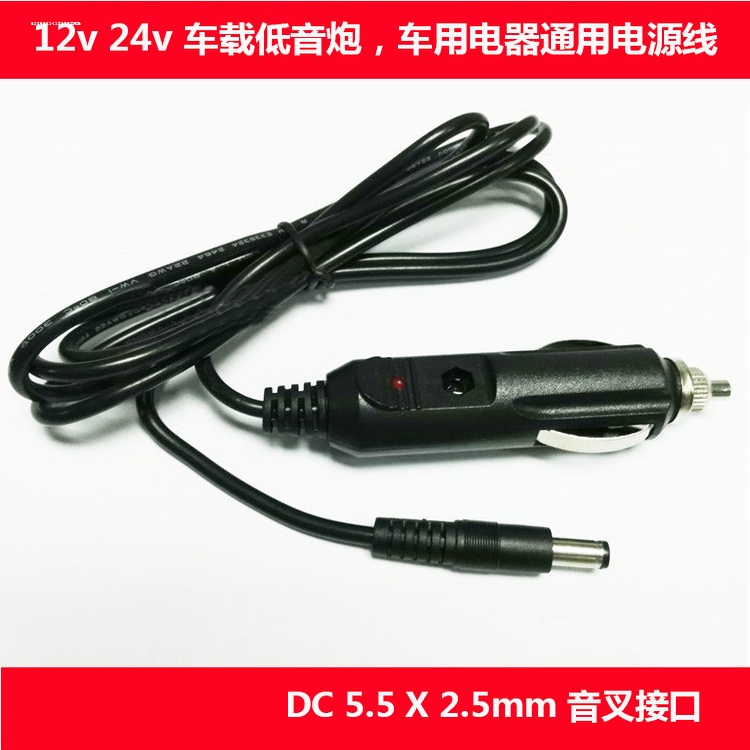 汽车载音响12V24V低音炮点烟器带开关电源线倒车影像DC插头连接线