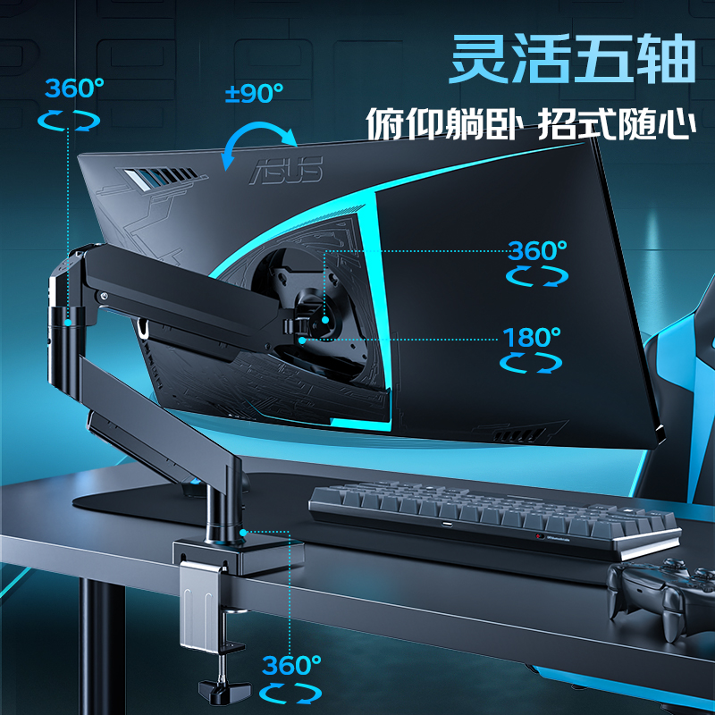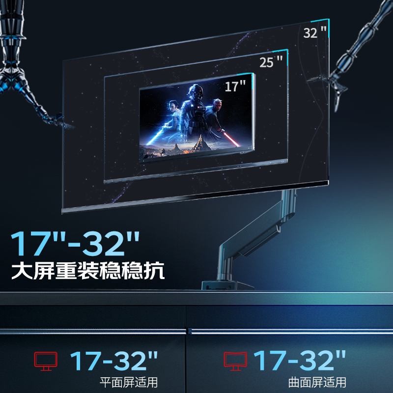 显示器支架气动旋转机械臂台式 电脑屏幕悬臂桌面支撑架升降底座