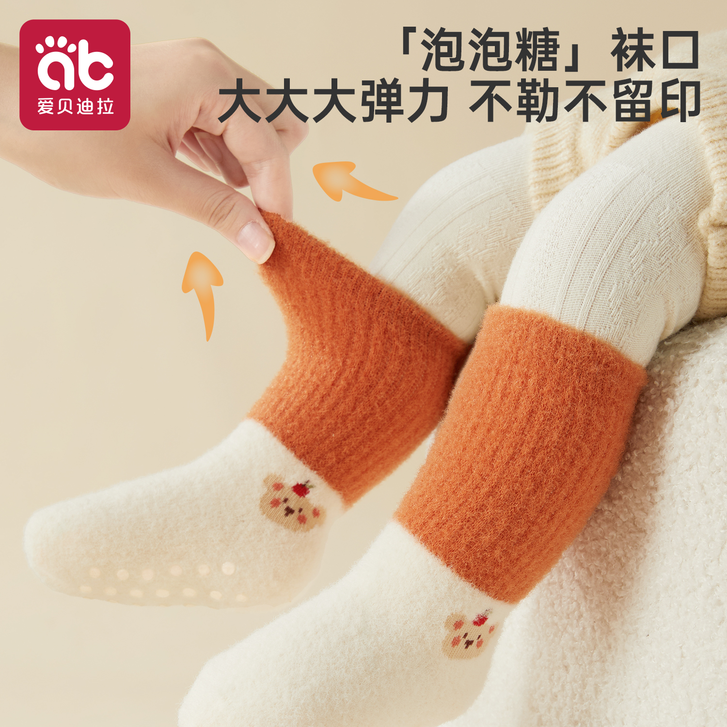 婴儿袜子秋冬款 a类无骨 加绒加厚新生幼儿0到3月宝宝防滑中筒冬季