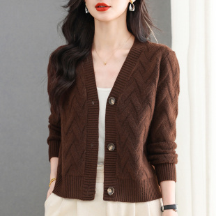 小个子毛衣外套洋气上衣 宽松短款 春秋女士小香风针织开衫 2025新款