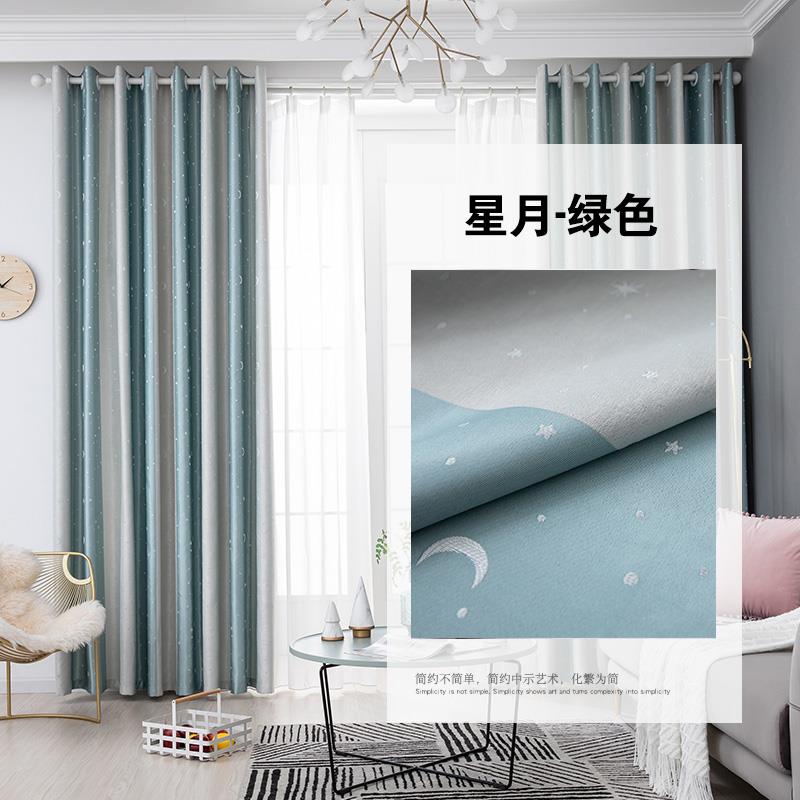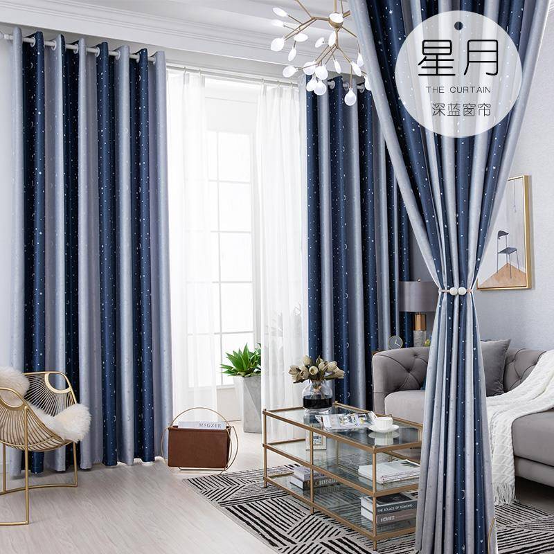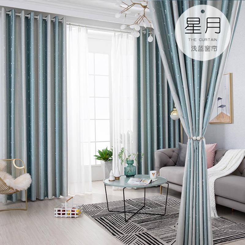 北欧正品 卧室客厅遮光隔热简约纯色高级感 帘窗帘蓝色提花2025新款