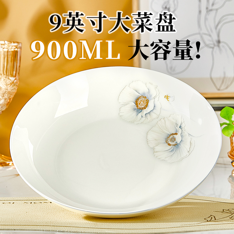 日式 家用陶瓷平盘凉菜圆盘调味碟饭盘实用盘 盘子菜盘餐具碗碟套装