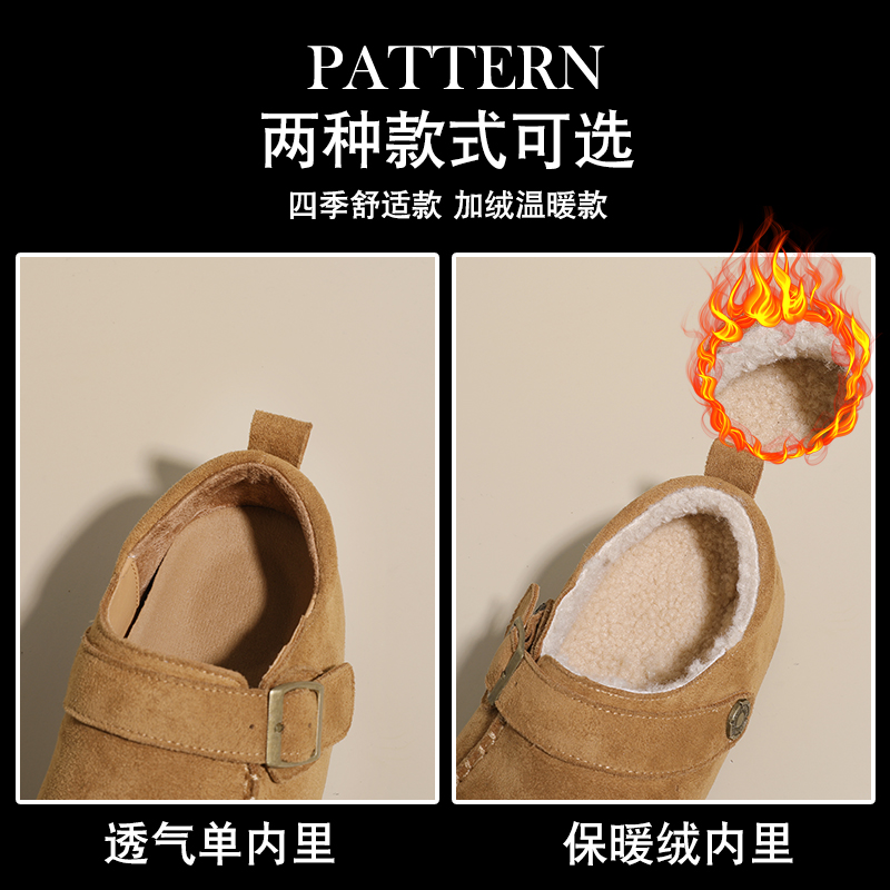 加绒低帮棉鞋 厚底豆豆单鞋 雪地靴 女2025秋冬新款 内增高全包勃肯鞋