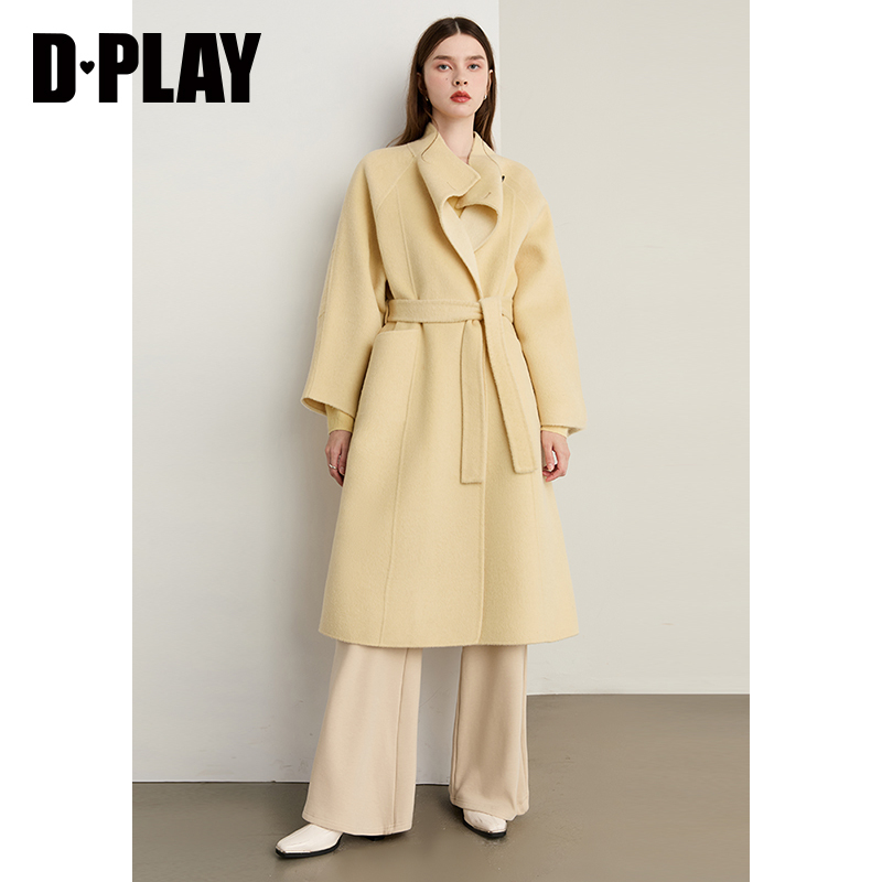 双面呢大衣 黄色100羊毛毛呢外套立领长款 DPLAY2025年冬季 新款