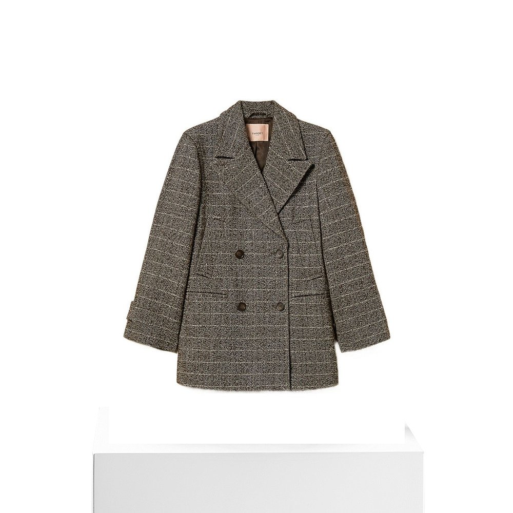 Short Coat With 自营twin Accents Herringbone Gold setBrown