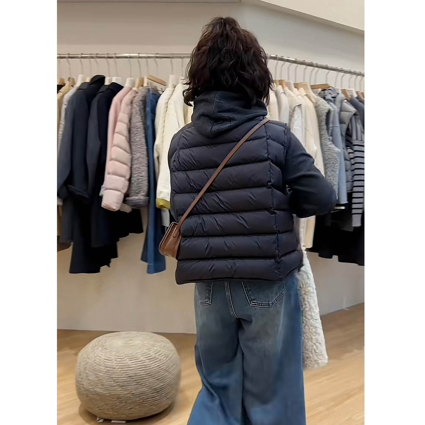 秋冬简约休闲保暖外穿连帽马夹 短款 鸭鸭羽绒马甲女款 2025年新款