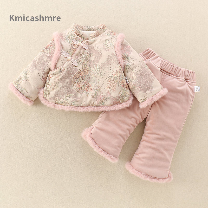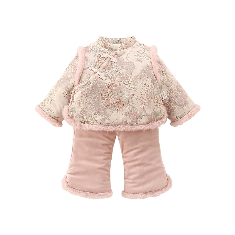 公主汉服 中国风加绒拜年服唐装 女宝宝洋气碎花年服套装 小孩新中式