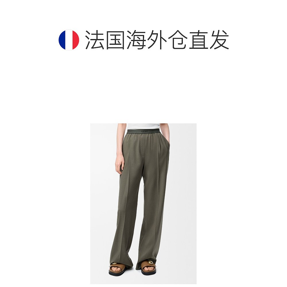 女士卡其绿羊毛弹力腰头休闲裤 自营1h可退 欧洲直邮Loewe罗意威