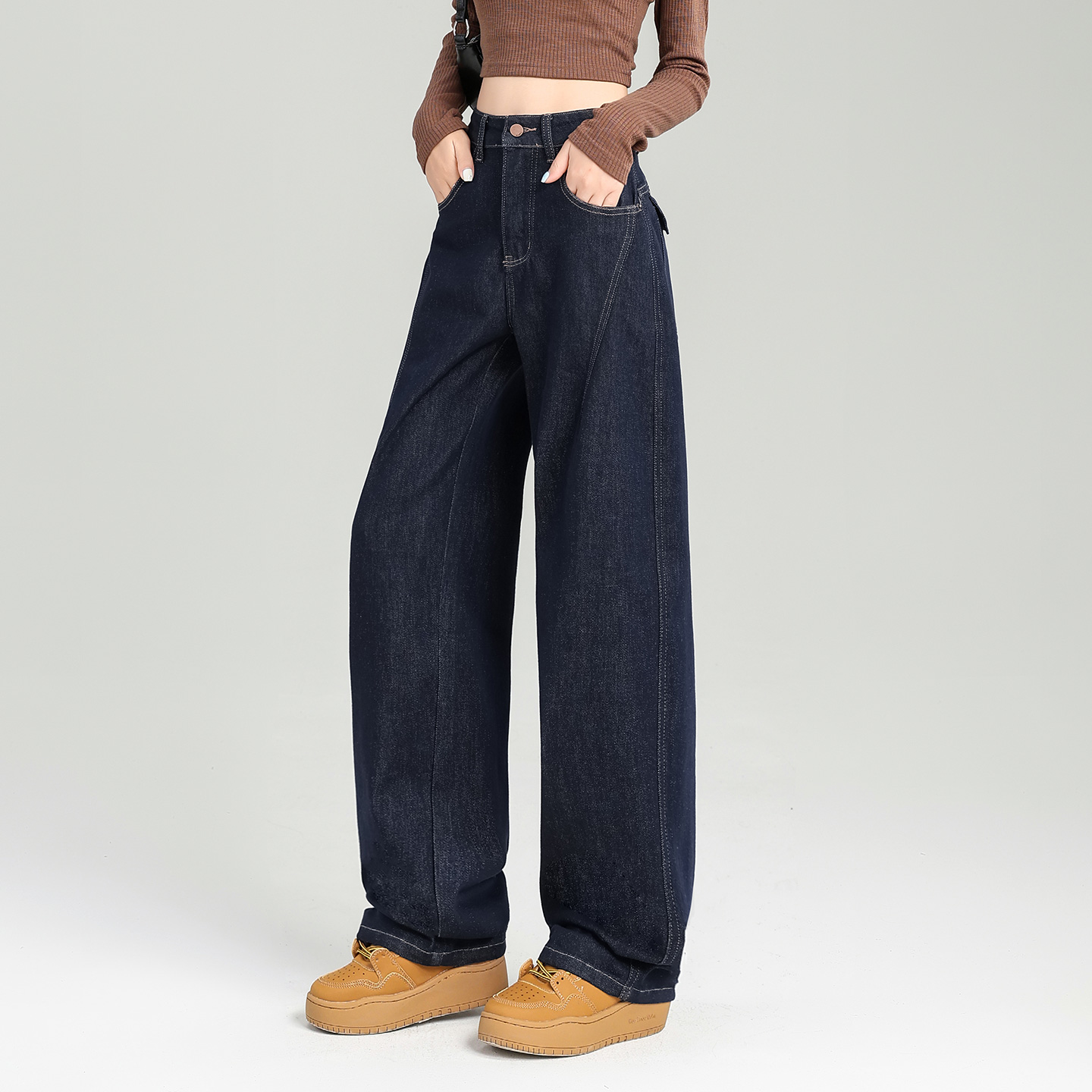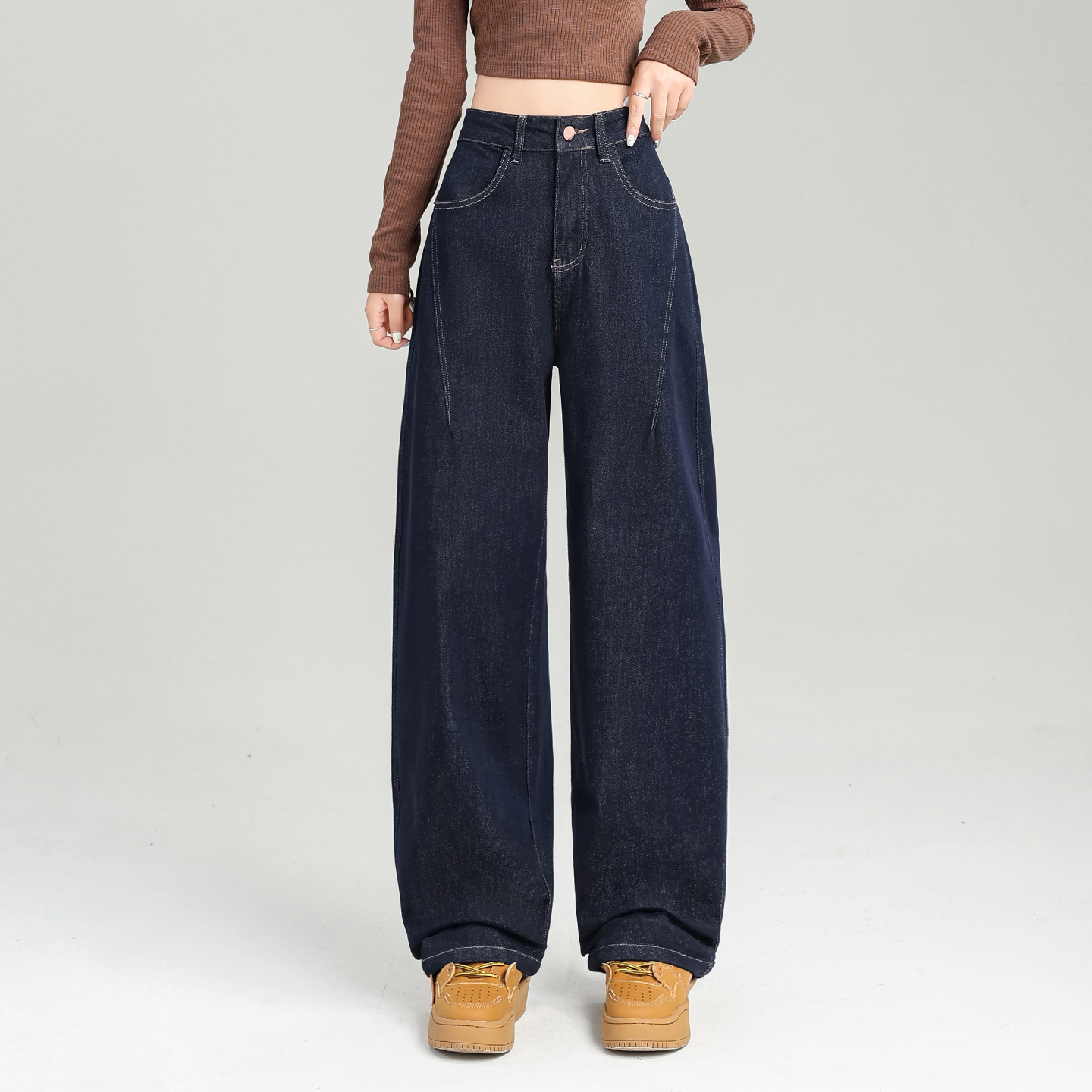 女冬40933286 100%棉复古高腰阔腿直筒牛仔裤 艾诺丝雅诗 建模裤