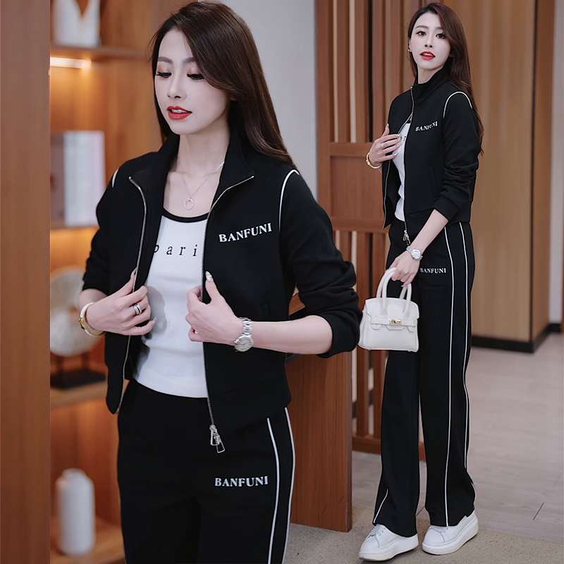 显瘦休闲时尚 气质拉链开衫 女春秋新款 运动套装 两件套 卫衣阔腿卫裤