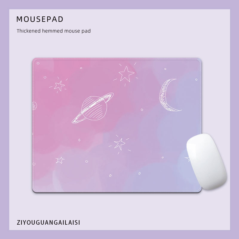 鼠标垫小号女生高颜值办公桌面桌垫笔记本键盘垫防滑锁边粉色天空