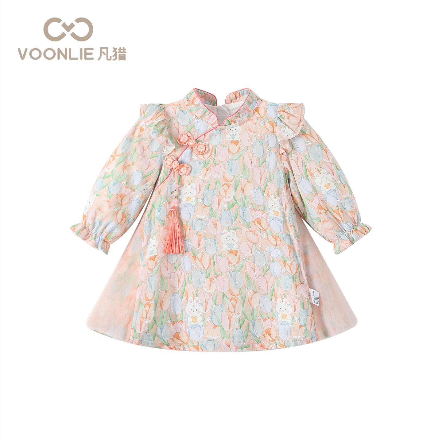 凡猎女童连衣裙秋装 洋气儿童公主裙婴儿一周岁宝宝礼服中国风春秋