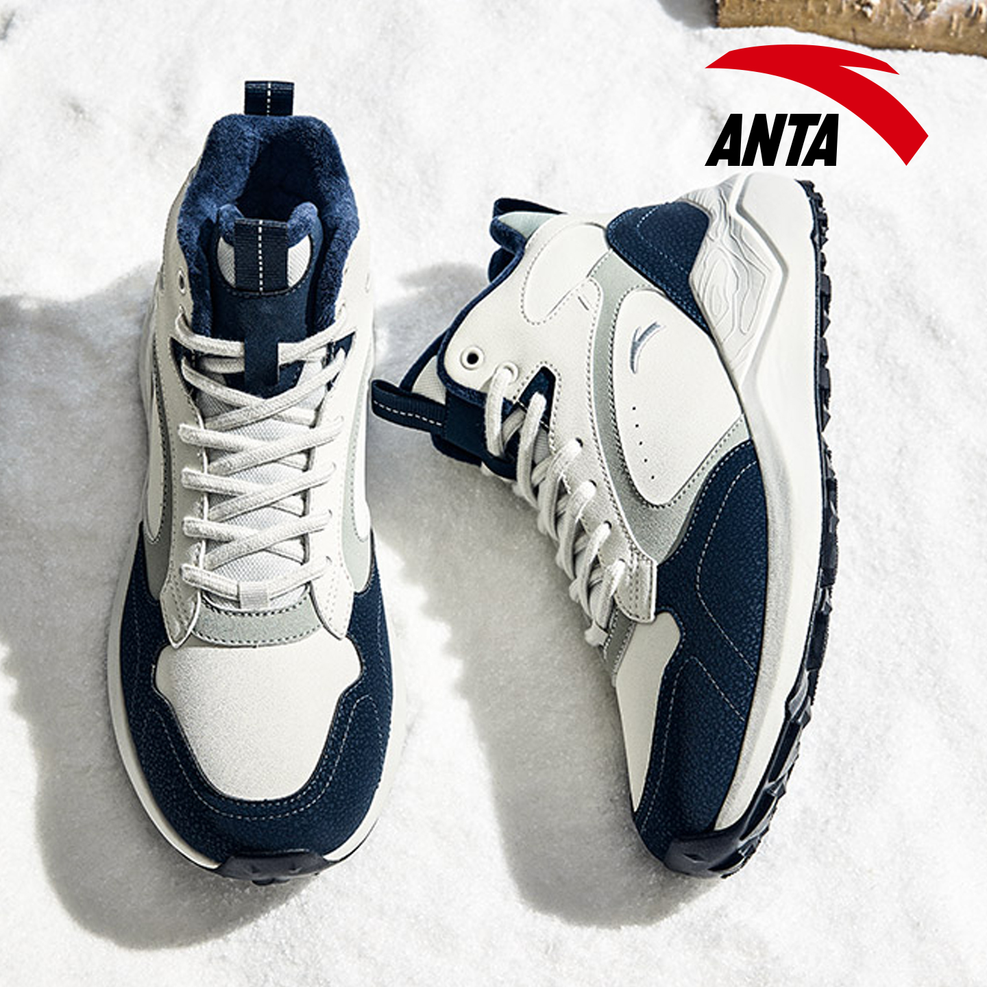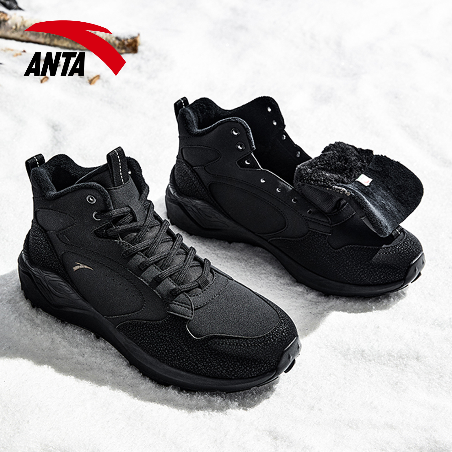 户外加厚保暖雪地靴防滑休闲运动鞋 2025冬季 加绒高帮棉鞋 安踏男鞋