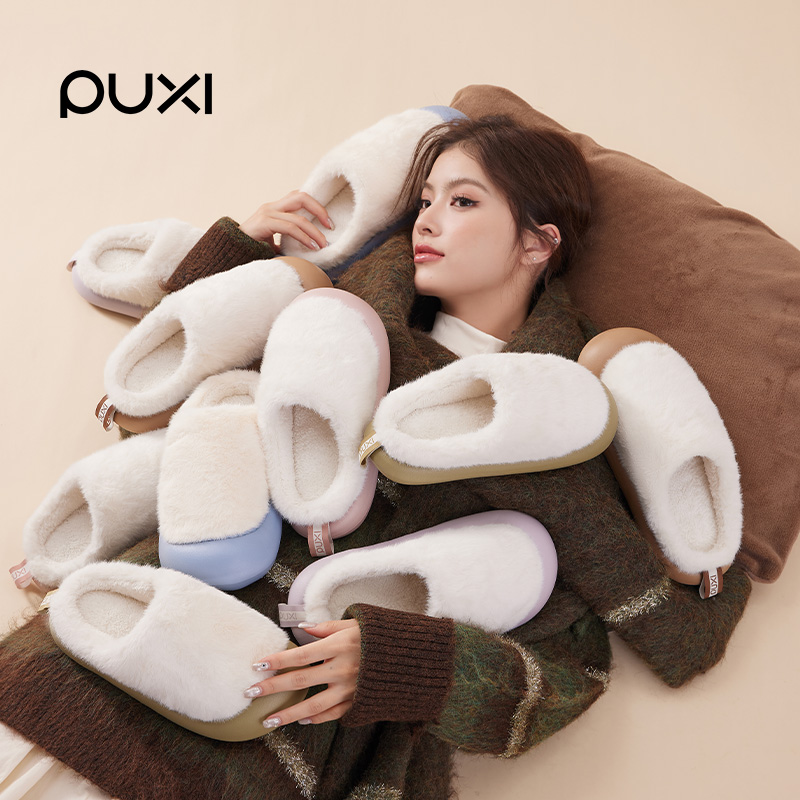 室内家居防滑毛毛拖鞋 冬季 情侣 女2025新款 朴西防污除臭抗菌棉拖鞋