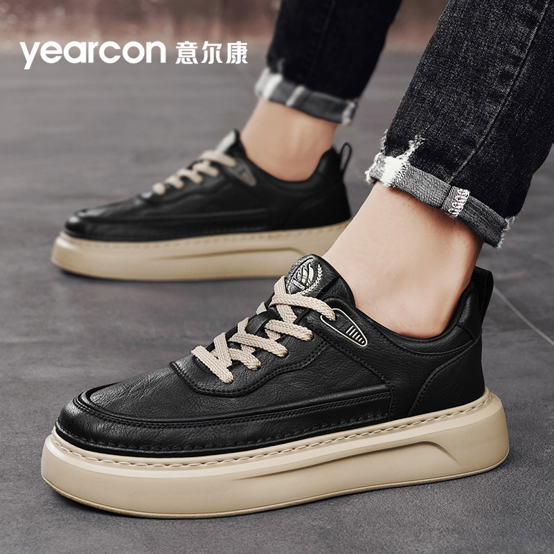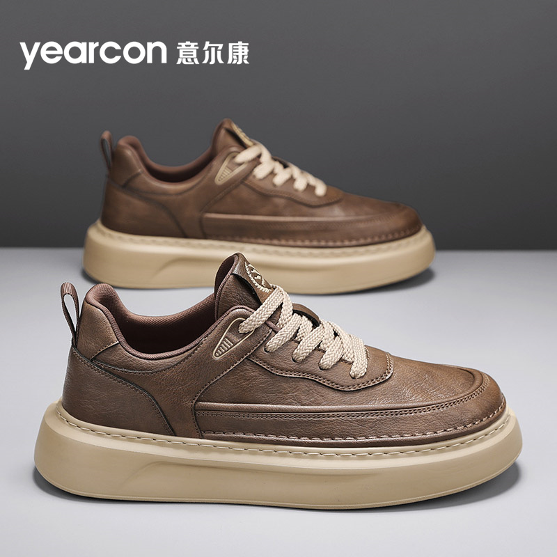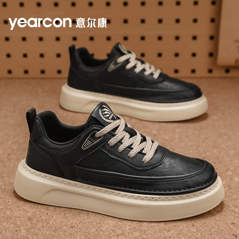 冬季 2025新款 男士 休闲皮面厚底运动白色板鞋 回力男鞋 子男款 小白鞋