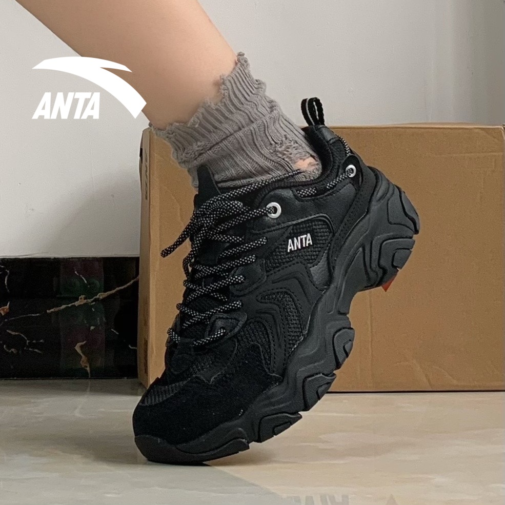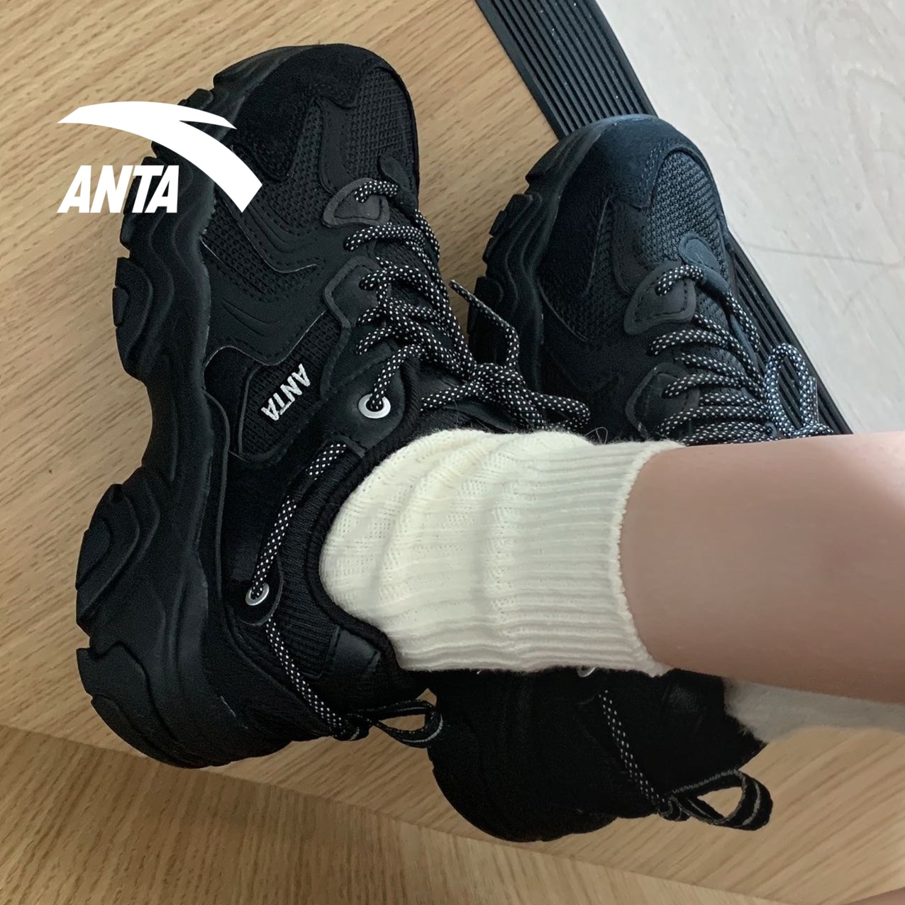 情侣运动鞋 男女同款 休闲鞋 安踏冠军全天候AG02二代复古黑色老爹鞋