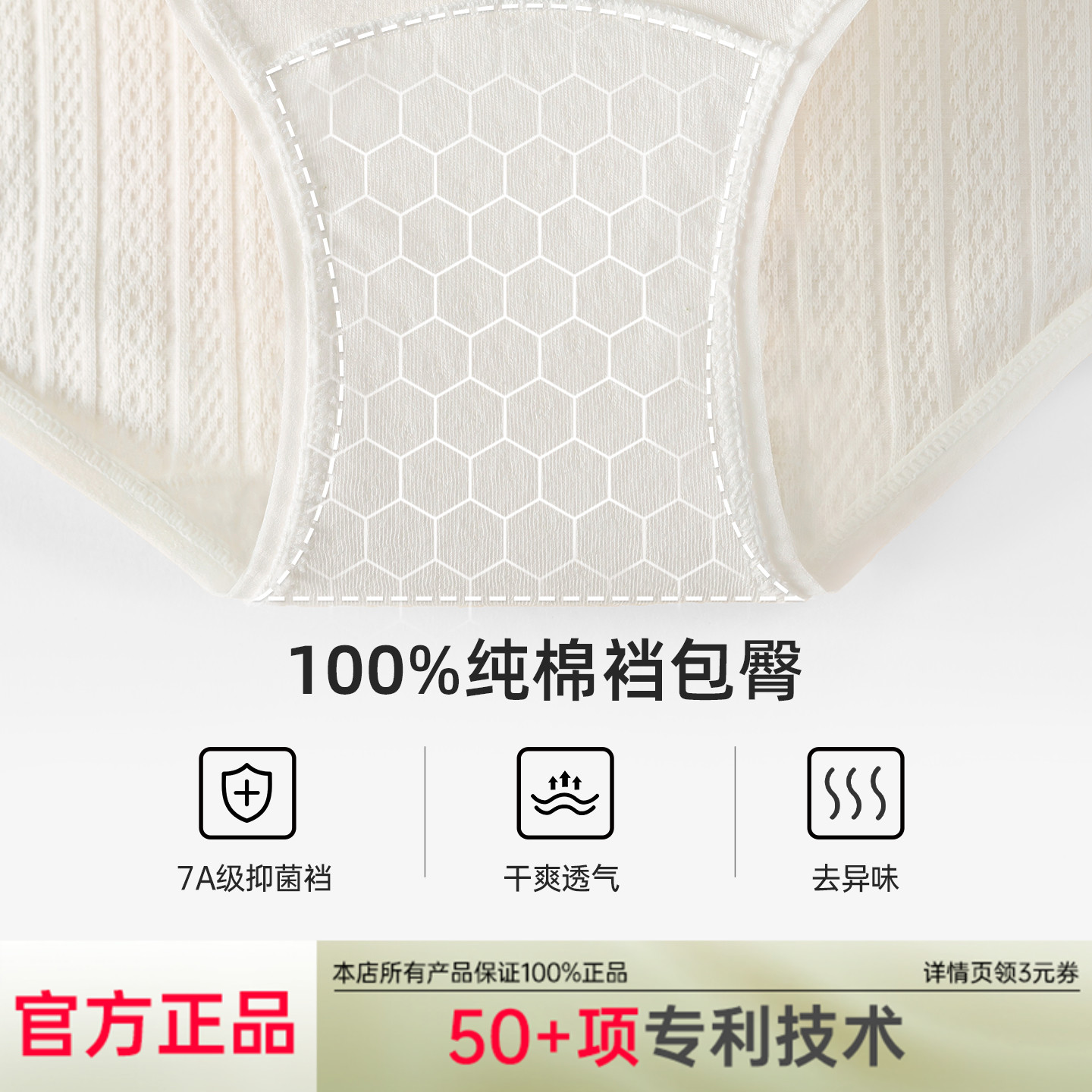 蝶安芬纯棉内裤 女7A抗菌裆A类原棉0染加长裆舒适透气中腰三角裤