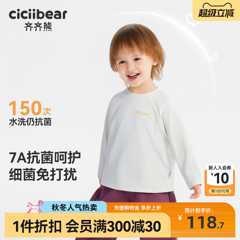 男童打底衫 加绒冬季 齐齐熊宝宝恤长袖 儿童半高领 吸湿速干抗菌