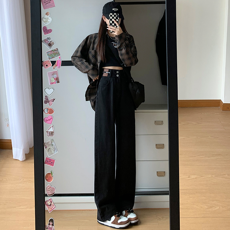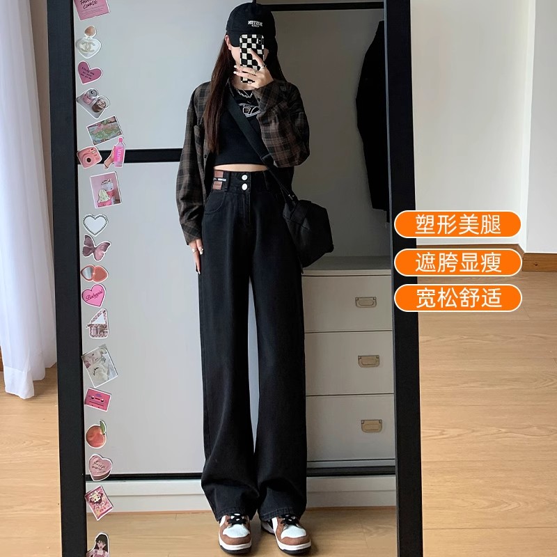 女春秋2025新款 垂感阔腿裤 高腰显瘦爆款 胖mm秋季 子 大码 直筒牛仔裤