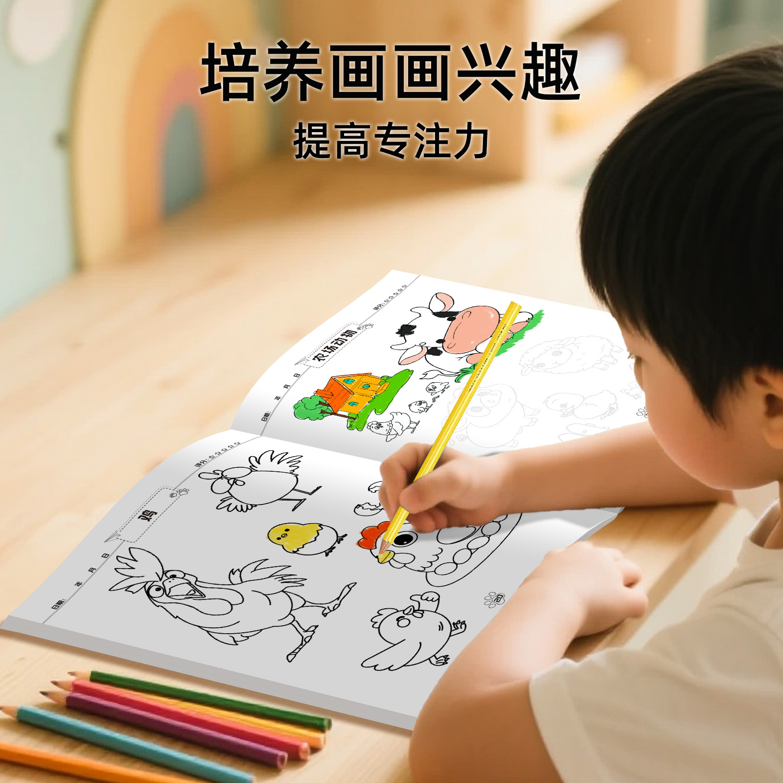 线描临摹画册儿童零基础简笔画描摹本漫画人物萌宠动物美食机甲花卉昆虫少儿绘画描线控笔图控笔训练卡通填色涂鸦画册手绘画本
