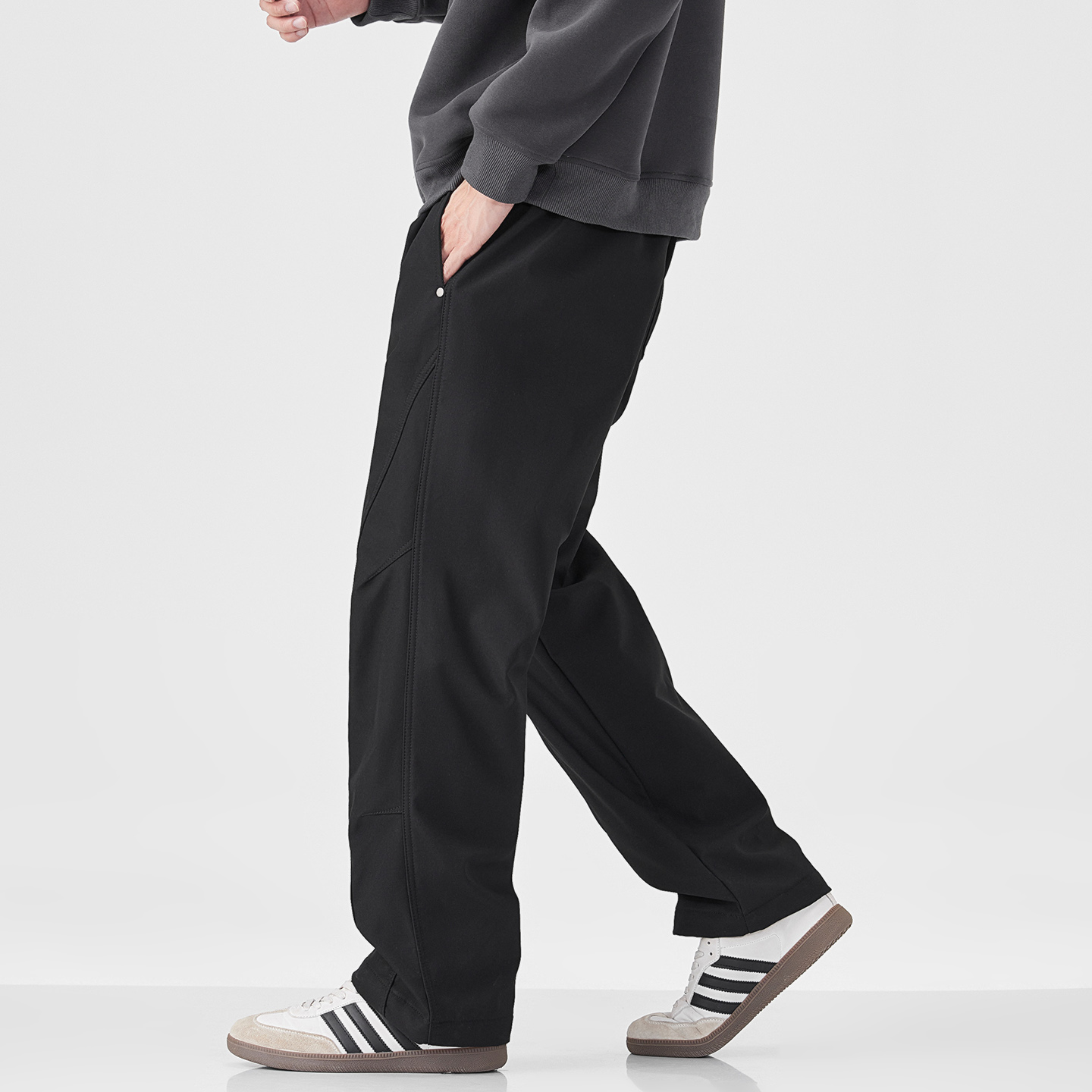 新款 冬季 加绒跑步裤 直筒裤 子 安踏防泼水运动长裤 黑色休闲长裤 男士