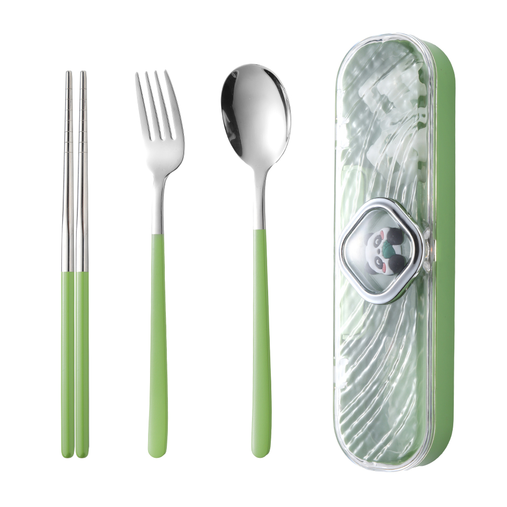 筷子勺子套装 餐具收纳盒初中生三件套一人用 小学生吃饭专用便携式